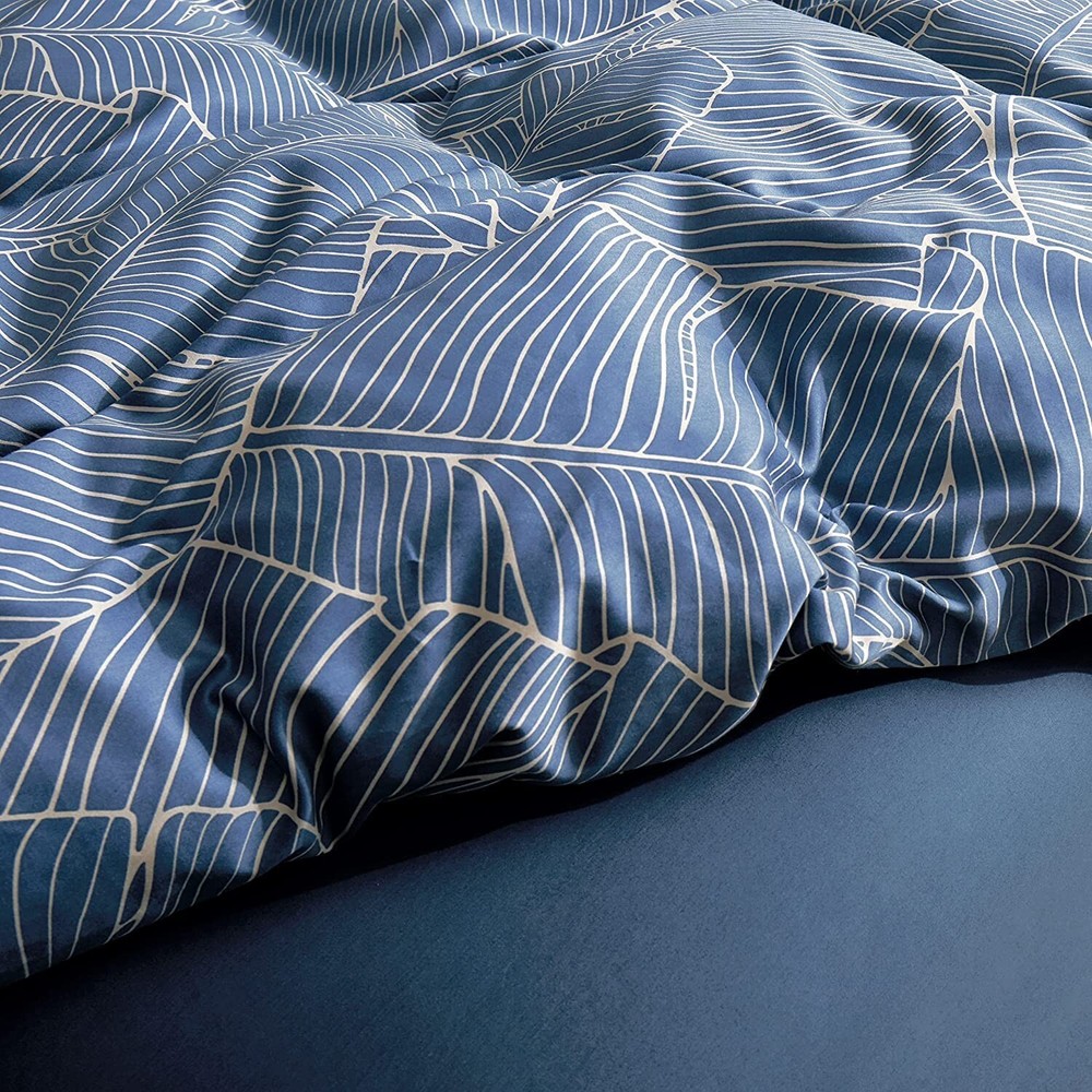 Eikei Modern Vintage Retro Mod Print Bedding Egyptian Cotton Duvet Cover Set Minimalist Chic Botanical Design Asian Zen Style Reversible Pattern in Full Queen or King Size (Queen, Palm Leaf) ✓ Free 60 Day Returns ✓ Free Express Shipping Description: Mid-century modern chic botanical print bedding set by EIKEI home. Unique tropical print in deep teal navy blue and tan. Reverses to the same pattern. Duvet Cover Set in Super King (Palatial King), King, Full/Queen or Twin size, generously sized to fit US comforter/insert sizes includes 1 duvet cover and 2 pillow shams (1 pillowcases for the Twin Size) with flange edge and french flap opening. Duvet cover with inside 4 corner ties and button closure to keep your comforter in place. Machine washable. Perfect gift for weddings, birthdays, anniversaries and holidays. Please note, comforter/insert is not included. Machine-wash warm, gentle cycle. Tumble dry on low. Using only non- chlorine when needed. Warm iron as needed. Features: Unique modern Boho chic botanic design duvet cover set by designer EIKEI Home Mid century Modern inspired botanical print in burnt orange, yellow on a deep charcoal background, reverses to dusty mint green 3pc Full/Queen Size set includes 1 duvet cover 89W by 92L and 2pc Pillow Shams Queen Size. 400 thread count 100-percent Egyptian cotton, densely woven and smooth with a subtle sheen Product Details: Size: Queen Material: Cotton Color: Palm Leaf Pattern: Botanical/Tropical Brand: Eikei Size: Queen Material: Cotton Color: Palm Leaf Pattern: Botanical/Tropical Brand: Eikei Number of Pieces: 3 Special Feature: Reversible Style: Modern Included Components: Pillow Sham, Duvet Cover Closure Type: Button Thread Count: 400 Age Range (Description): Adult Product Care Instructions: Machine Wash Theme: Botanical,Mid Century,Minimalist,Modern,Retro,Vintage Cartoon Character: Floral Seasons: All Item dimensions L x W x H: 7.99 x 5.98 x 2.99 inches Item Weight: 3.02 Pounds Weave Type: Satin Pillowcase Quantity: 2 Unit Count: 1 Count Sham Quantity: 2 Manufacturer: Eikei UPC: 768737445036 Product Dimensions: 7.99 x 5.98 x 2.99 inches Item Weight: 3.02 pounds Country of Origin: China Item model number: Palm Leaf Is Discontinued By Manufacturer: No Date First Available: December 27, 2016