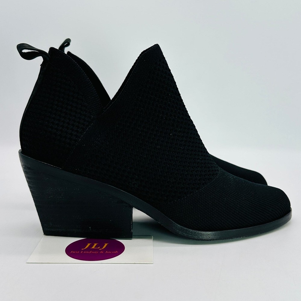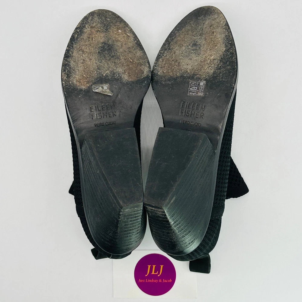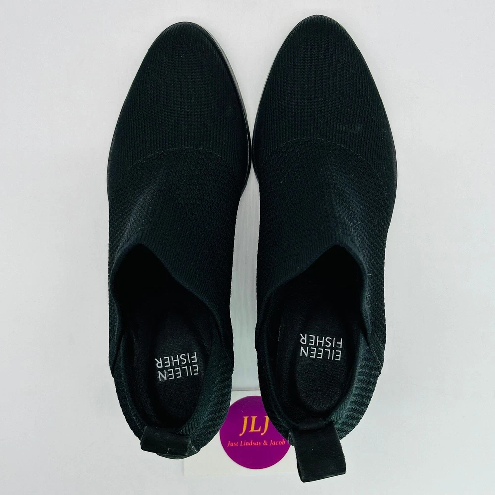<![CDATA[<div>Eileen Fisher Women's Joss Black Stretch Knit Slip On Ankle Booties Size 6 Merging style, comfort and sustainability, this bootie comes in a flexible mesh-like knit made from recycled plastic bottles. Its overlapped opening makes on and off easy, while a suede pull-loop and wrapped block heel complete the smart everyday design. • 1.5" heel • 4" shaft • Textile and leather upper/leather lining and sole Item is pre-owned and any signs of wear are shown in the photos. Smoke free. No box. I always carefully package, box and ship immediately. Reach out with any questions! Pair in the photos is exactly the pair you will receive.