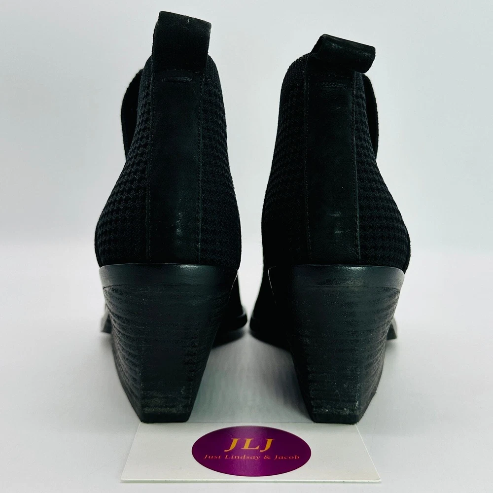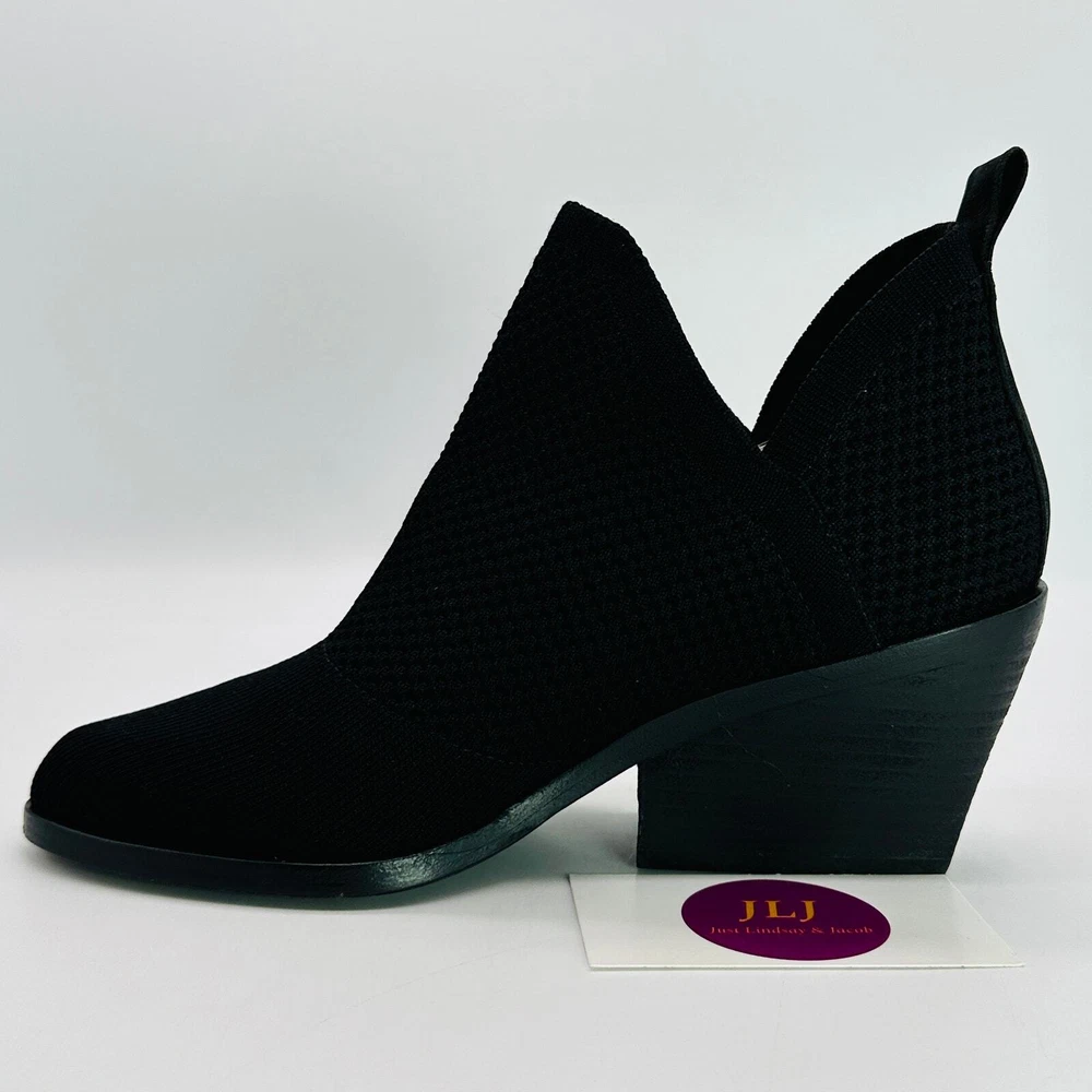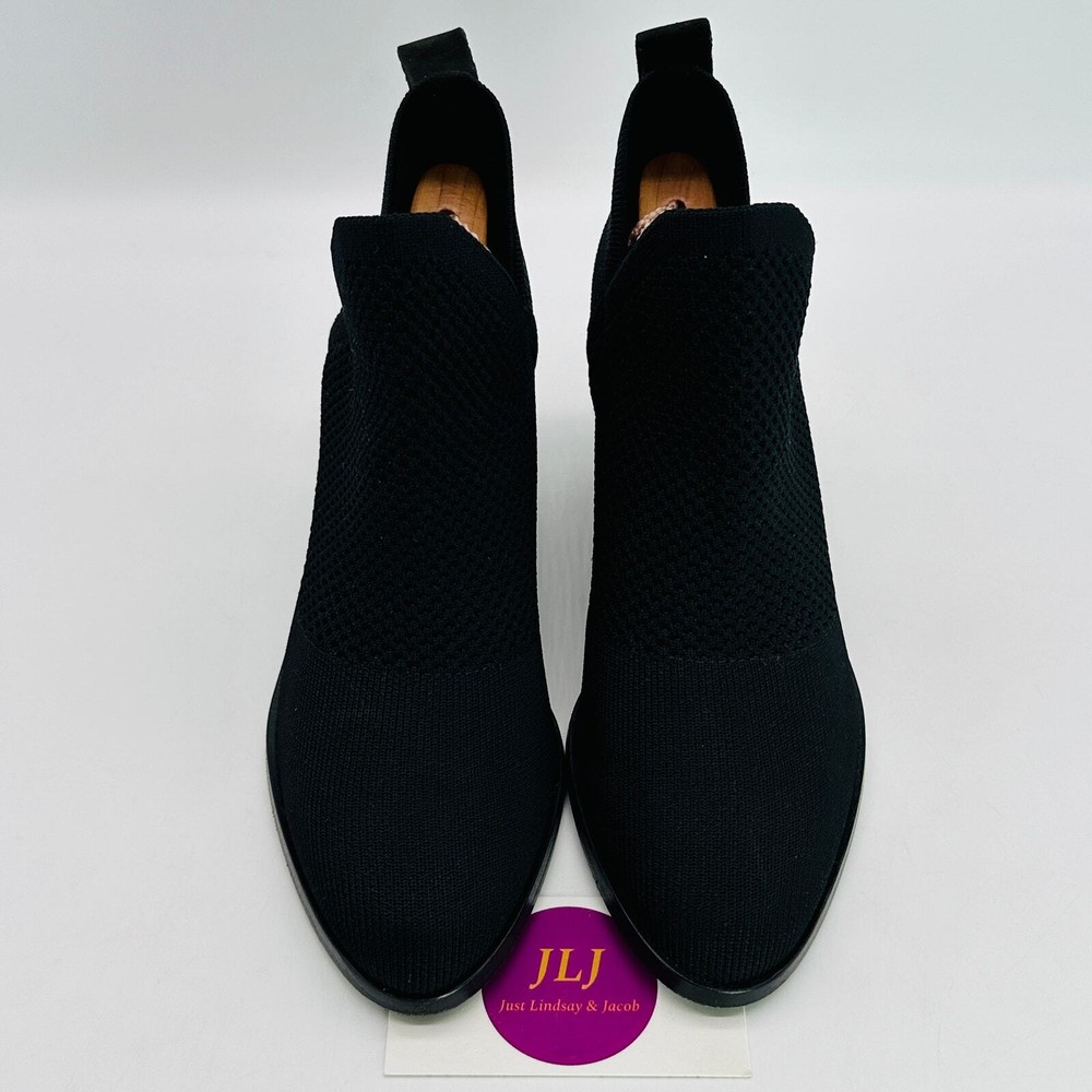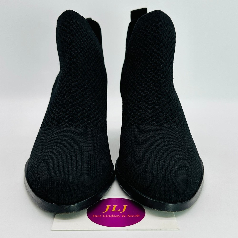 <![CDATA[<div>Eileen Fisher Women's Joss Black Stretch Knit Slip On Ankle Booties Size 6 Merging style, comfort and sustainability, this bootie comes in a flexible mesh-like knit made from recycled plastic bottles. Its overlapped opening makes on and off easy, while a suede pull-loop and wrapped block heel complete the smart everyday design. • 1.5" heel • 4" shaft • Textile and leather upper/leather lining and sole Item is pre-owned and any signs of wear are shown in the photos. Smoke free. No box. I always carefully package, box and ship immediately. Reach out with any questions! Pair in the photos is exactly the pair you will receive.