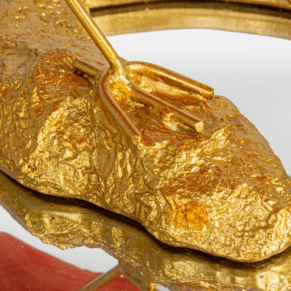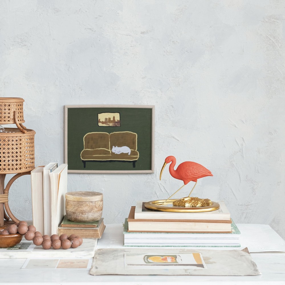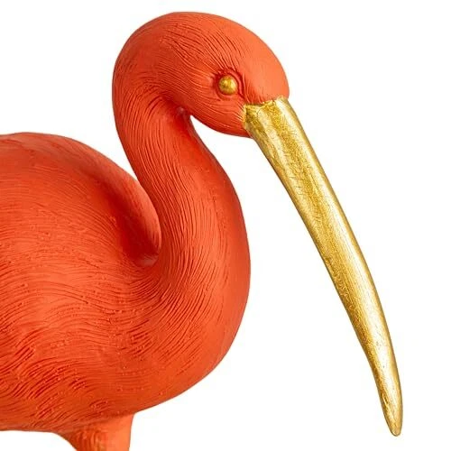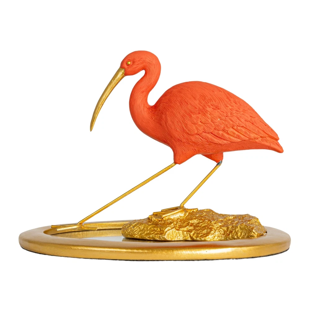 This Resin Scarlet Ibis on Mirrored Tray is a stunning representation of nature's artistry combined with human craftsmanship. The figurine measures 10 inches long, 8.25 inches wide, and 7 inches high, making it an impressive addition to any room. The oval shape of the tray complements the bird's elegant stance, while the pink and gold finish add a rich, warm tone to the piece. Designed to capture the eye and accentuate the light in any setting, this Scarlet Ibis brings a tropical and luxurious vibe to eclectic, glam, and vintage themes. The mirrored tray reflects the intricate details of the ibis, creating a sense of depth and dimension. This piece is perfect for those looking to add a touch of sophistication and elegance to their home decor. A graceful Scarlet Ibis in resin, perched on a mirrored tray, its pink and gold finish shimmering with sophistication A perfect piece for eclectic, glam, and vintage decor, adding a touch of ornate beauty and a splash of color Ideal for display on a console table or vanity, this figurine reflects light and elegance into any space Made of high-quality resin, this Scarlet Ibis figurine captures the essence of the bird with a luxurious twist 10” L x 8.25” W x 7” H