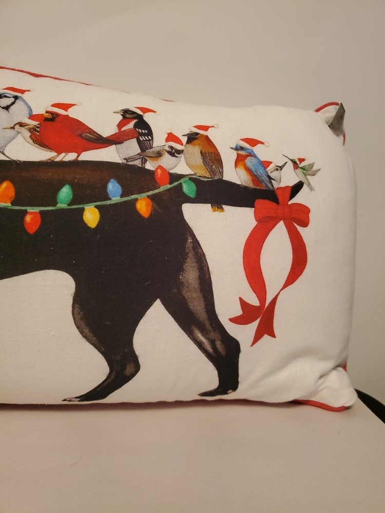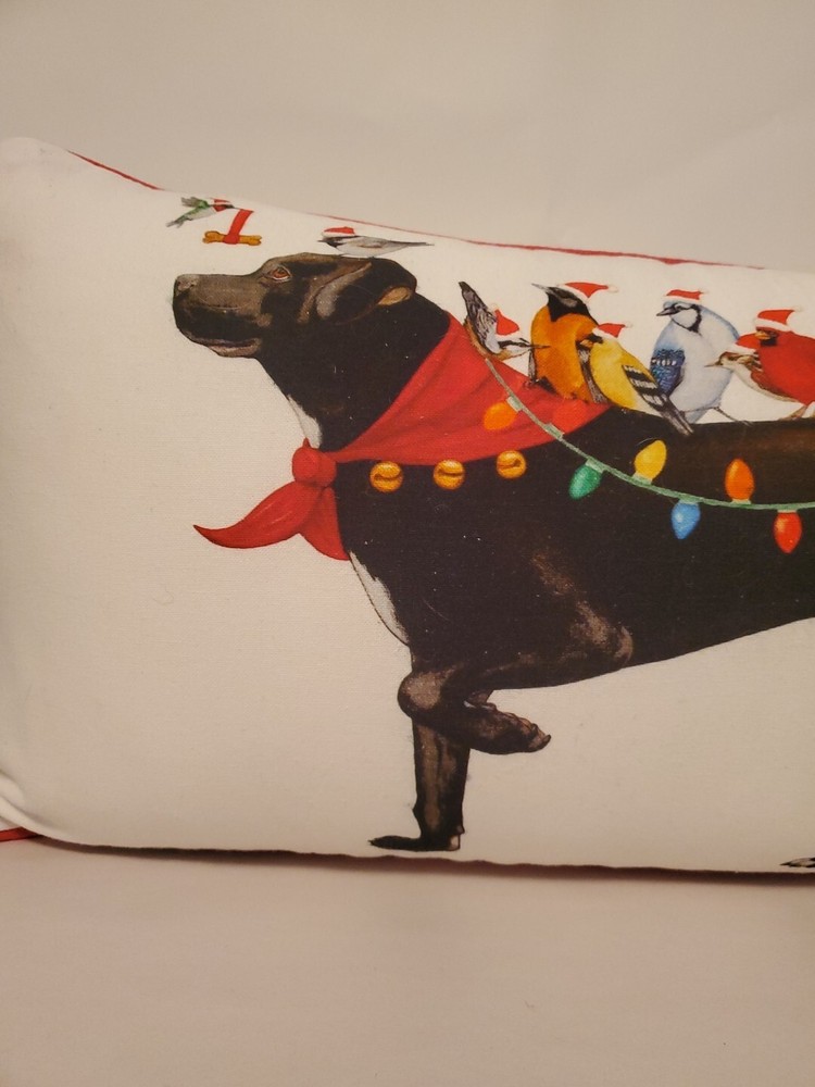 Elm & Iron Birds On Dog White 24x12" Lumbar Pillow Creative Co-op Tags still attached. Never Used yet has some light smudges and ink mark on the backside. Add a touch of whimsy to any room with this Elm & Iron Birds On Dog White 24x12" Lumbar Pillow from Creative Co-Op. The rectangular pillow is made of 100% cotton and filled with polyfill, making it both soft and durable. The bird & dog characters subject add a fun and playful touch to the pillow, while the red bordered edges give it a stylish finish. This throw pillow is perfect for women, men, boys, girls, and anyone in between. Its size of 24 x 12 inches and white color make it a versatile addition to any decor. Machine wash it for easy care and enjoy its creative design.