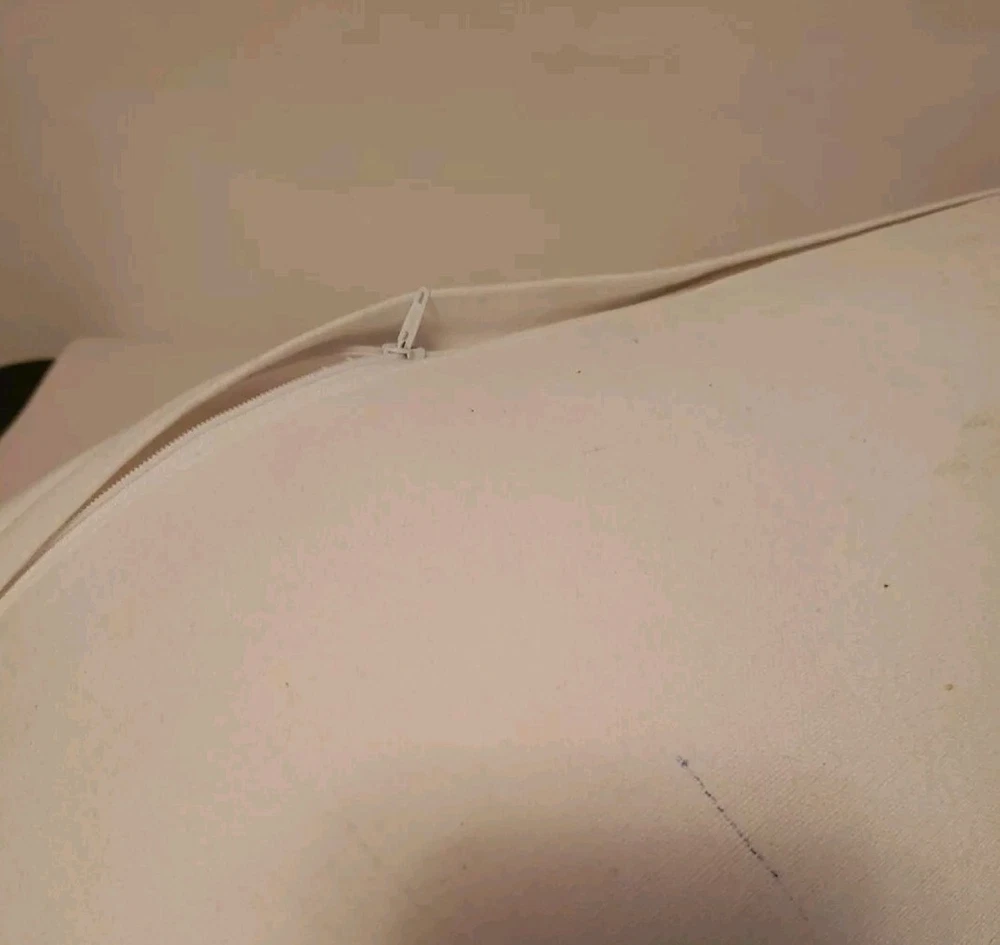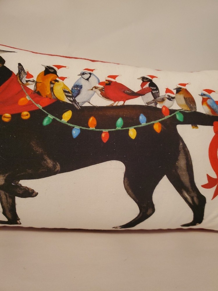 This lumbar pillow is adorable and adds a playful charm to any space! The cotton fabric feels soft, and the polyfill gives it just the right amount of fluff. Though it has minor smudges on the back, the front design—birds on a dog—is so cute and well-printed. The red border adds a nice pop of color. Perfect for a couch, bed, or chair!