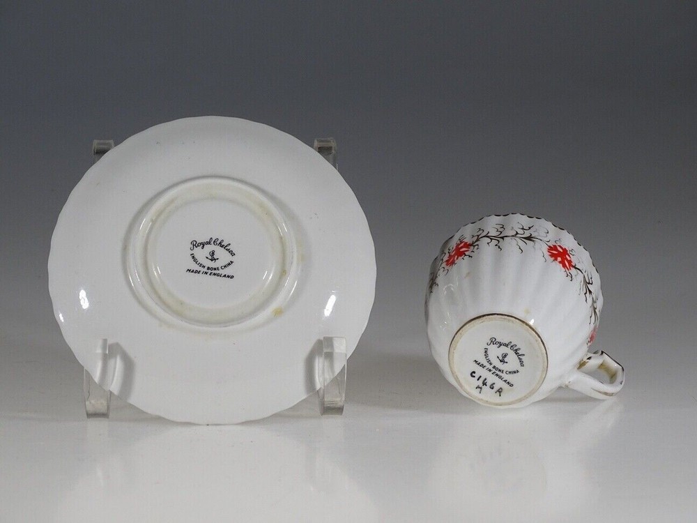 This stunning Royal Chelsea demitasse set is a true treasure! The delicate gold gilt detailing and vibrant orange blossoms pop beautifully against the crisp white background. The scalloped edges and elegant handle add a touch of vintage charm. Perfect for collectors or anyone who appreciates fine tea ware—it feels luxurious and timeless. Shipping was secure, and it arrived in perfect condition. Absolutely love it!