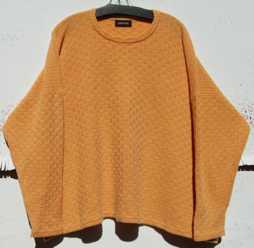 NICE LIGHT TO MEDIUM WEIGHT CONDITION EXCELLENT CONDITION STILL LOOKS NEW WITH NO FLAWS. READY TO WEAR. Eskandar SOFT ORANGE Mid Weight Cashmere Textured Knit Round Neck Sweater O/S COLOR: SOFT ORANGE Round neck, long sleeve with drop shoulder seam. Measurements All of the measurements are approximate and measured laying flat than doubled . Since sizes do vary, so please e-mail me before bidding if you are not sure about sizing. Bust 66”, Hem 68”, Length 26” to 28" Care Dry Clean or Cold Hand Wash Made in Scotland by Eskandar NO RETURNS, REFUNDS OR EXCHANGES unless an item is grossly misrepresented or I inadvertently miss a flaw. All measurements are listed in each auction, so please pay careful attention to ensure an item will fit you. Measurements can vary greatly within designers and often within the same brand, so please don't go just by the size listed. Please ask questions before biding, if you need any additional information about color, a particular measurement, etc., I am always happy to provide additional information. PLEASE READ I PURCHASE DELIVERY CONFIRMATION ON ALL MY PACKAGES FOR PROOF THAT I SHIPPED ITEM. International Buyers – Please Note: Import duties, taxes, and charges are not included in the item price or shipping cost. These charges are the buyer's responsibility. Please check with your country's customs office to determine what these additional costs will be prior to bidding or buying. All of my items are from a clean, smoke free home and are delivered clean and ready to wear! ALL SALES ARE FINAL PLEASE E-MAIL ME WITH ANY QUESTIONS YOU MAY HAVE PRIOR TO BIDDING. ALL PAYMENTS MUST BE RECEIVED WITHIN 3 DAYS OF BID ENDING. Powered by eBay Turbo Lister The free listing tool. List your items fast and easy and manage your active items.
