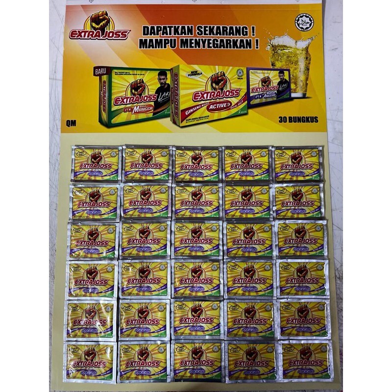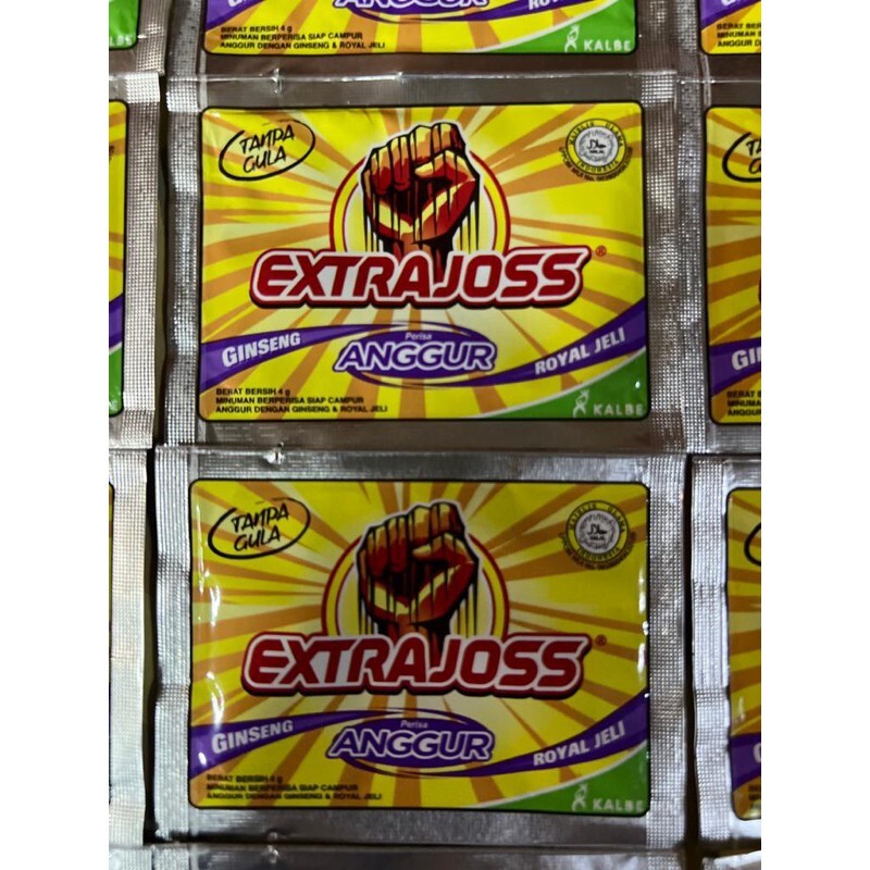 Extra Joss is an energy drink that helps body metabolism to produce extra energy, because it contains seven kinds of vitamin B, amino acid, caffeine, Korean ginseng, and royal jelly. Flavoured Drink Base Effervescent Powder With Ginseng & Royal Jelly Extra Joss is designed for an active lifestyle. It will recharge your working day. It is also a brilliant pre-sport or workout power up. The tropical fruit flavour tastes great and is Sugar Free. The 'Active' ingredients work in synergy to assist metabolism, stimulate confidence, increase physical endurance, overcome fatigue, sharpen the senses, and enhance reaction speed. Ingredients : Citric Acid Anhydrous, Sodium Bicarbonate, Taurine, Aspartame, Caffeine Anh, Ginseng Powder Extrat (10:1), Vitamin B8, Mixed Fruit Flavour, Vitamin B3, Vitamin B5, Vitamin B2 Sodium Phosphate, Mixed Fruit Durarome, Royal Jelly, Vitamin B6, Vitamin B1, Vitamin B12 (0.1% WS)