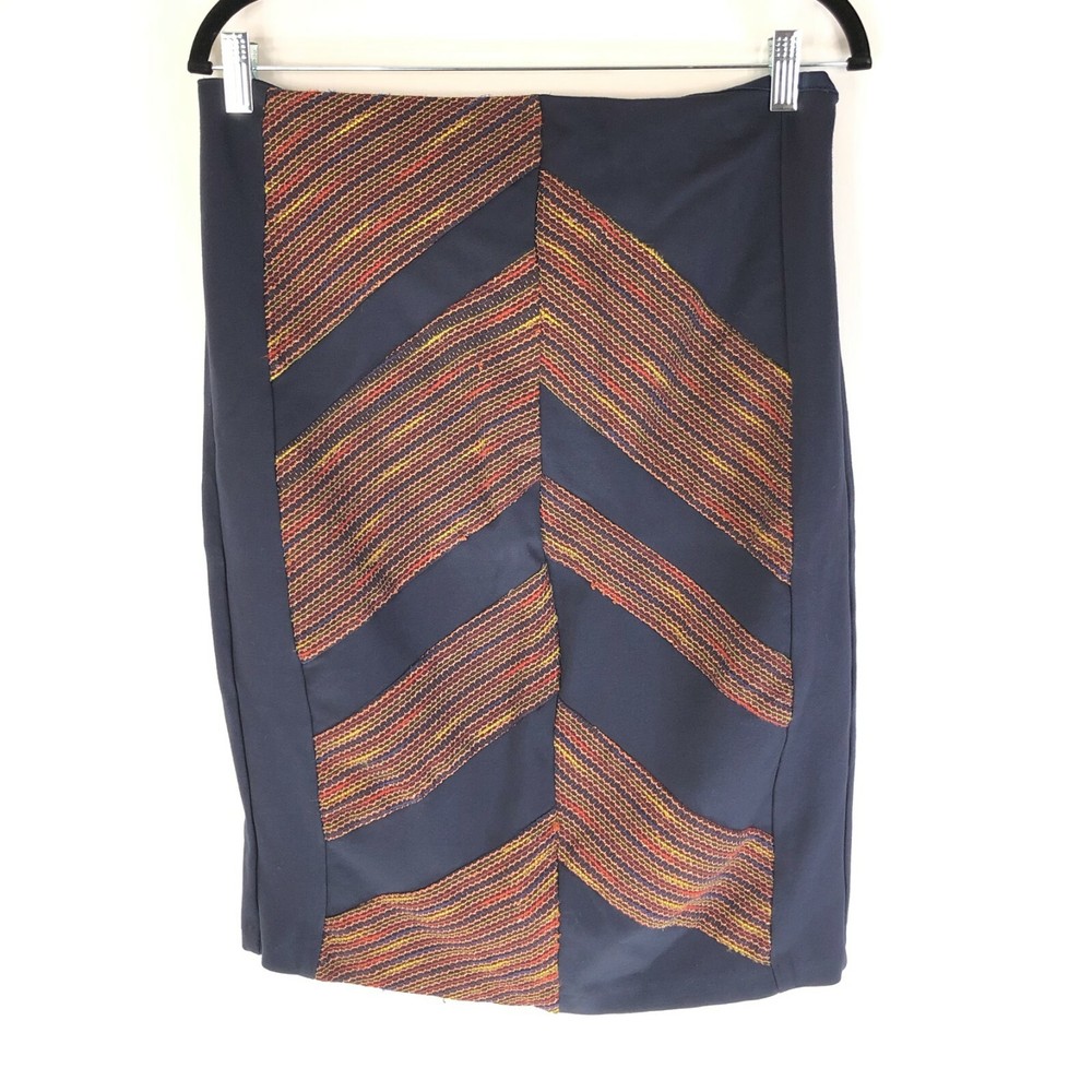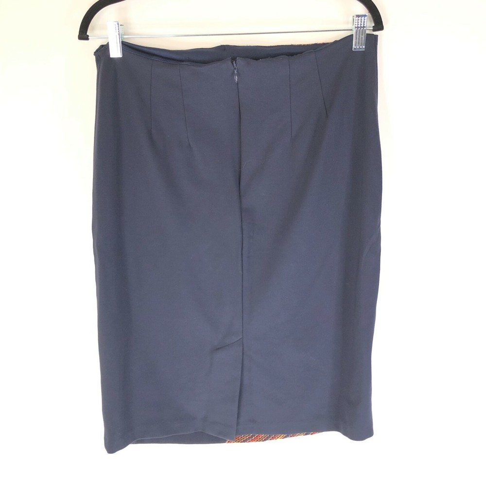 Eva Franco Pencil Skirt Colorblock Panels Stretch Navy Blue Orange Size L Item is in great pre-owned condition with no flaws! Waist: 16" Length: 26" Comes from a smoke free home. Feel free to ask any questions you may have. Thanks for looking!