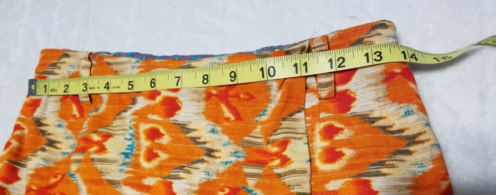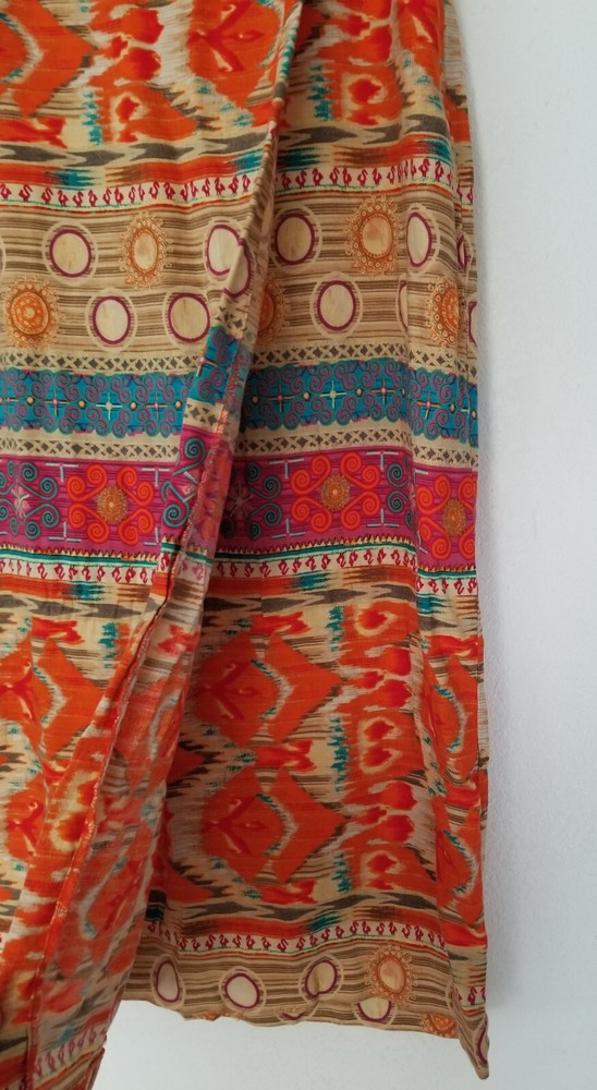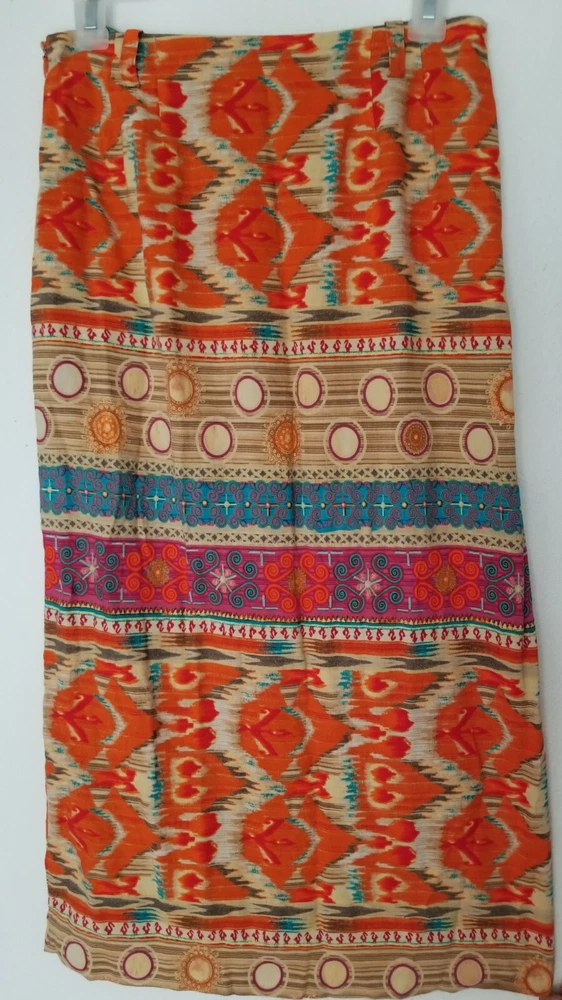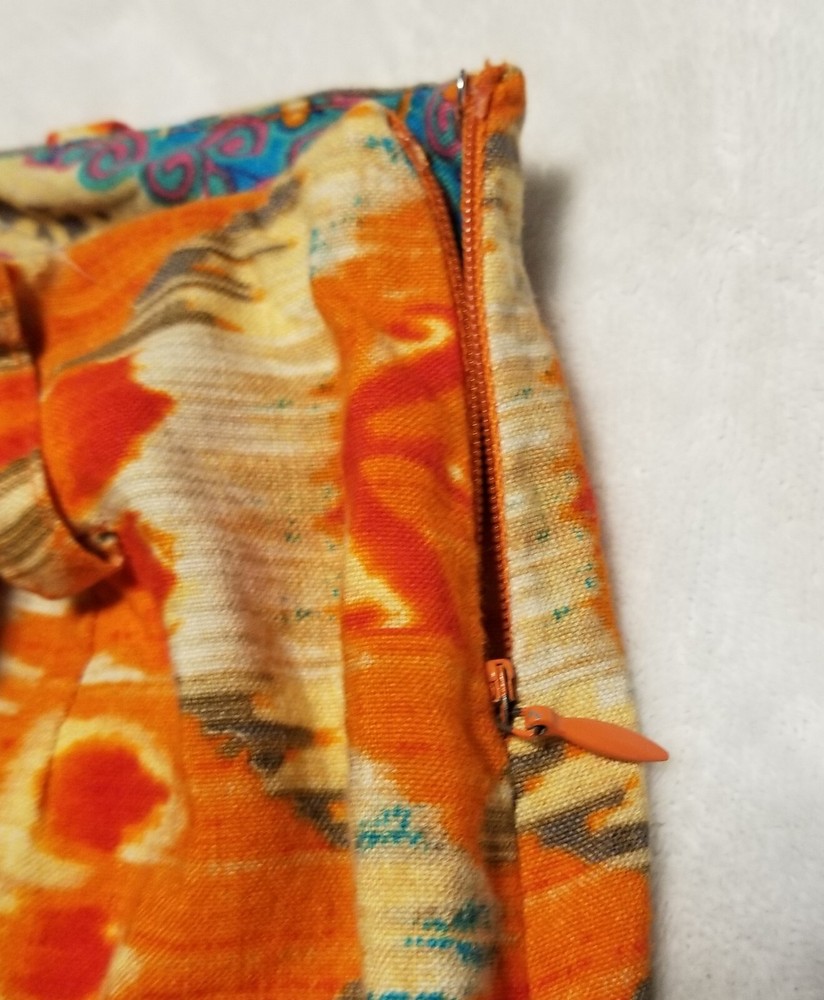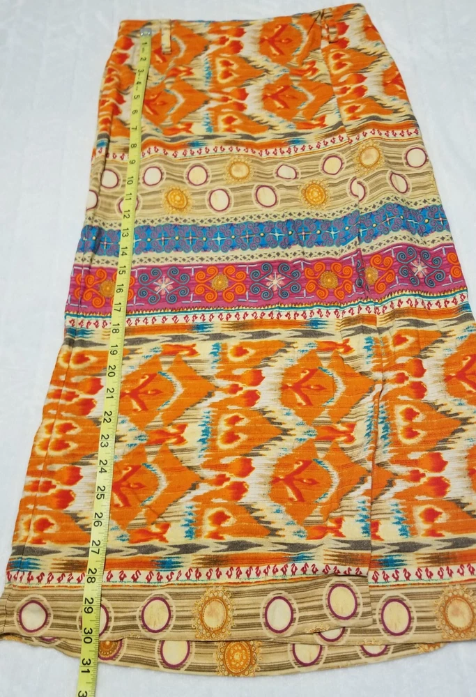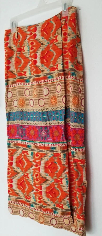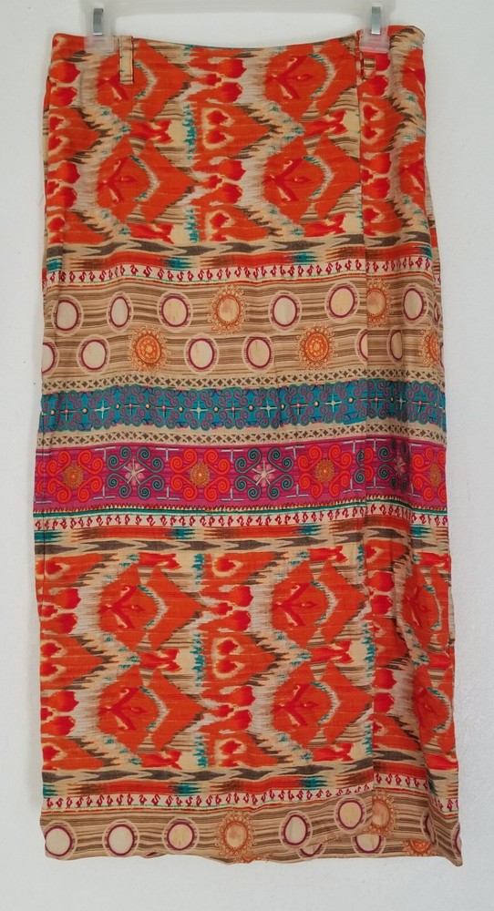 Evan-Picone Orange Multicolor Ikat Linen Blend Midi Skirt Size 6