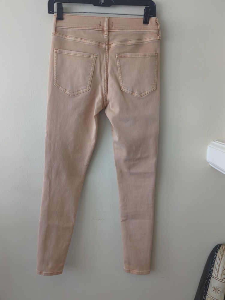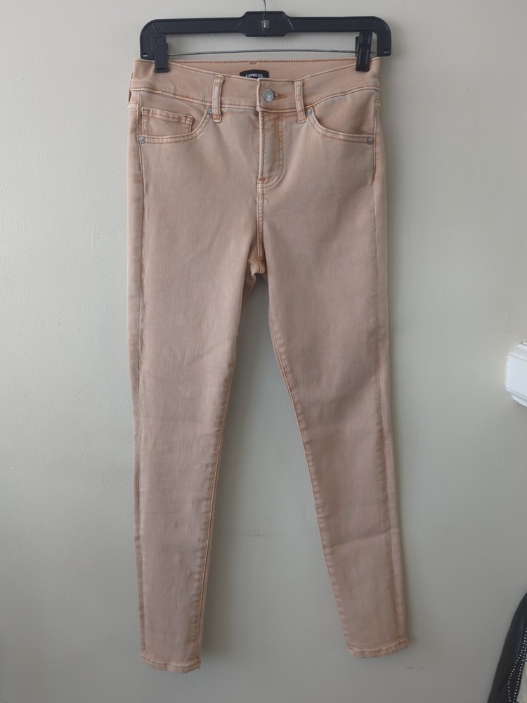 Elevate your denim game with these Express skinny jeans in a beautiful peach color. These jeans are perfect for any occasion and feature a mid-rise fit that flatters your silhouette. The solid pattern and orange color make them a versatile addition to your wardrobe. Crafted from high-quality materials, these jeans are designed to last. They are perfect for women's size 2 and feature a skinny fit that is comfortable and stylish. Perfect for any fashion-conscious woman, these Express jeans are a must-have addition to your wardrobe. F0220