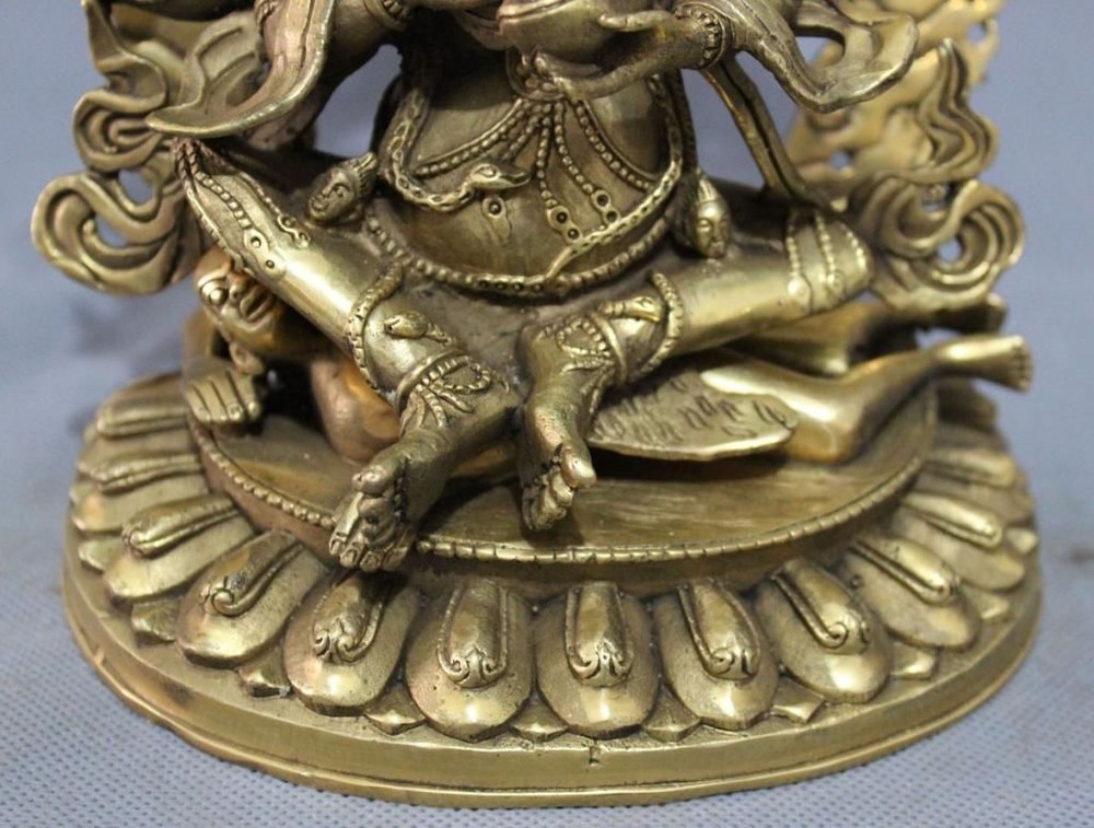 Tibet Brass Buddha Statue 4 Arms Mahakala Vajra Jambhala