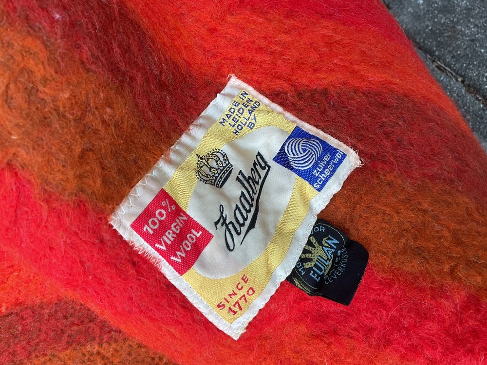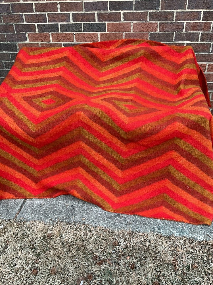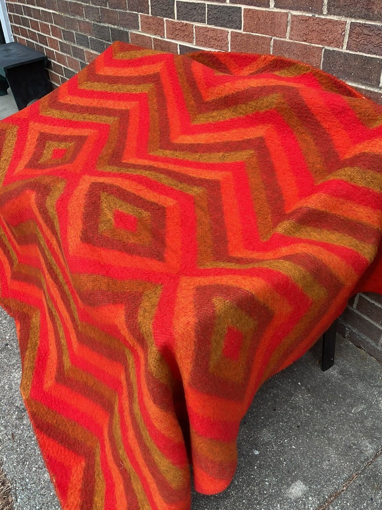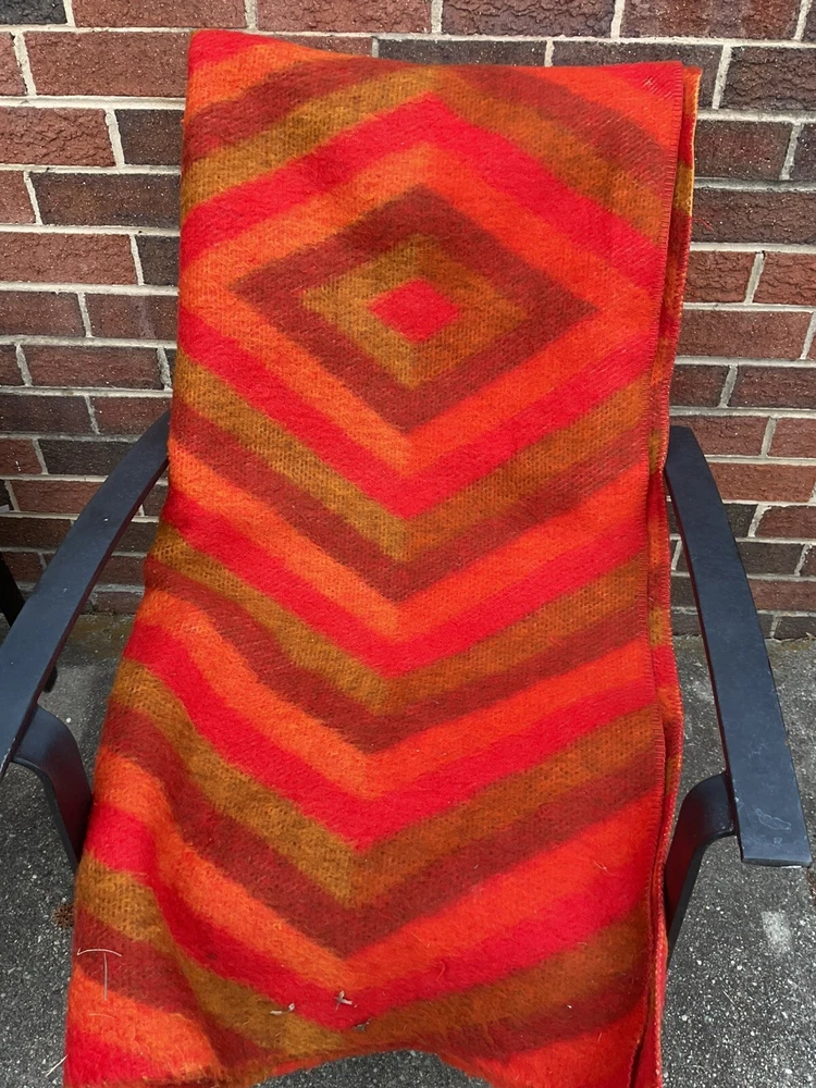 FAALBERG HOLLAND Wool BlanketOrange Rusts MOD Mid century Vintage huge 90 X 130. Made in Leiden Holland. Beautiful, no holes, no odors. Rare Rare Rare ....