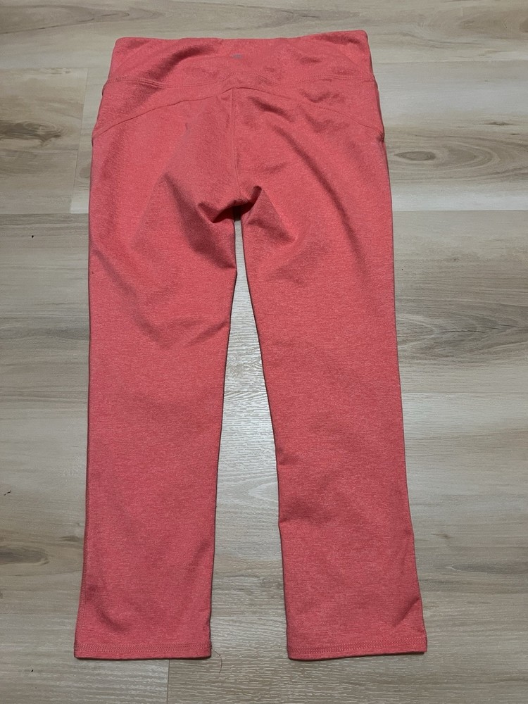 Get ready to tackle your workout with these stylish and comfortable Fabletics leggings! The vibrant orange and coral colors will add a pop of fun to your gym wardrobe. These mid-rise leggings are perfect for any activity, including gym and training, cross training, yoga, running and jogging, and walking. The blended fabric of polyester and spandex makes them lightweight and stretchy, ensuring a perfect fit. The leggings also feature an elastic waist, media pocket, and are easy to care for, making them a practical choice for any active woman. The cropped capri style is perfect for warmer weather and the skinny leg style is flattering for any body type. Don't miss out on this opportunity to add these Fabletics leggings to your activewear collection!