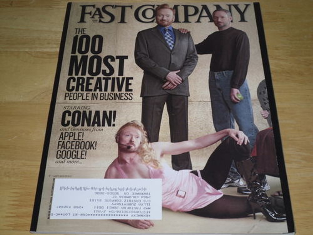 FAST COMPANY MAGAZINE ISSUE: JUNE 2011 COVER: THE 100 MOST CREATIVE PEOPLE IN BUSINESS STARRING CONAN! CONDITION: BRAND NEW! UNREAD! THERE ARE A COUPLE OF SCANNING LABELS/ADDRESS LABELS ON THE FRONT AND/OR BACK COVER AND SOME WEAR WHEN ORIGINALLY DELIVERED. BUY WITH CONFIDENCE! Powered by eBay Turbo Lister The free listing tool. List your items fast and easy and manage your active items.
