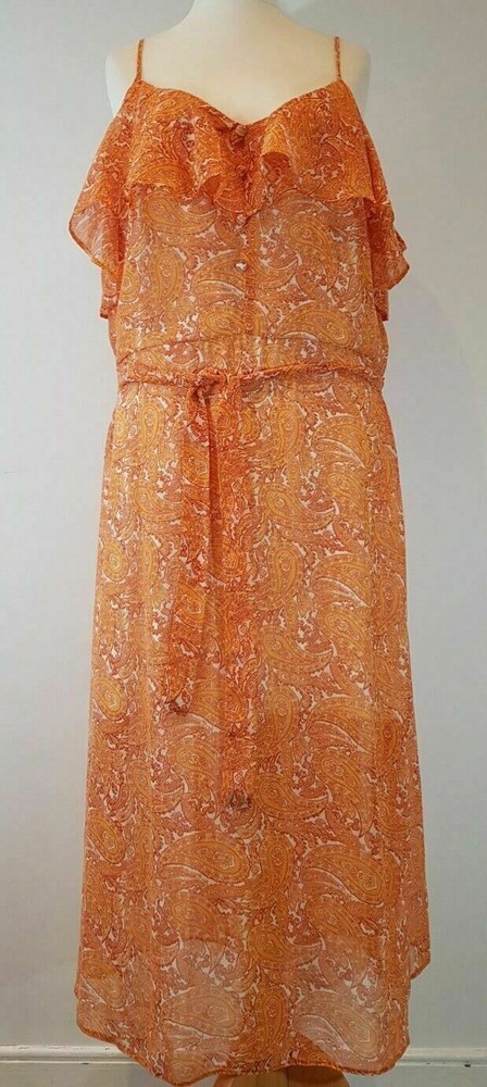 my-green-wardrobe Same or Next Day Dispatch Est 2006 VISIT STORE JEANS JACKETS TROUSERS SHOES New & Gently Used Clothing & Accessories UK Seller We stock a wide range of brands & styles Before being photographed and sent to our customers all clothing and accessories are checked. If necessary specific information on an item will be advised on the listing under the condition notes. We obtain good quality branded clothing on a regular basis. Please see our other items and if there is nothing you see right now please add us to your favourite seller or check back soon. Add Me To Your Favourites Feedback Delivery Returns Payment We value our customer's opinions and feedback. May we ask in the unlikely event there are any problems with delivery or any other issues at all, please allow us the opportunity to resolve matters before leaving negative or neutral feedback. If you are happy with your item and our service we are always extremely grateful for receiving positive feedback and a 5 ***** Star Rating. We aim to send all items out either the same or very next day. We use Royal Mail 2nd Class service which usually takes 2-3 days. On some of the heavier items we use Hermes 3-5 days. We accept returns no problem at all, we ask the buyer to contact us first to arrange the best method to return the item and the correct address. Thank You. We kindly ask that payments are made within 3 days. Thank You Thank You For Your Visit - Sarah F&F Orange Paisley Ruffle Belted A-Line Women's Summery Mid-Length Dress UK 20 Please see all photos for the general condition of the item for sale as this forms part of the description. Where possible a measurement has been taken and included in the photos (measured in inches). This is a "buy it now" listing, the price you see is the price of the item and you can complete your purchase immediately. It is not an auction, there is no bidding on "buy it now" listings. Visit our shop for other listings and please add us to your favourites Our feedback means everything to us, so as long as you are happy with your purchase and our service we would really appreciate you leaving positive feedback and 5 stars. However in the unlikely event you are not satisfied with your purchase please allow us an opportunity to resolve matters with you first. Thank you. We have been selling online since 2005. We offer a reliable and friendly service and you can rest assured that we will do our very upmost to make your purchase as easy and as efficient as we possibly can. We endeavour to post on the same or next day (excluding weekends and bank holidays). We use Royal Mail 48 which provides online delivery confirmation with a GPS map and is a 2-3 day service. On our heavier items, we usually use either Hermes or Parcelforce 3-5 day service and fully tracked. © Copyright Online2ya. All Rights Reserved.