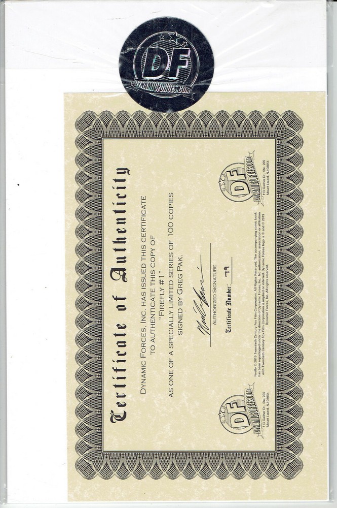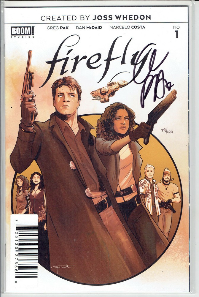 WE ADD NEW ITEMS ALMOST EVERY DAY! ADD US TO YOUR FAVORITE SELLERS AND CHECK OUR LISTINGS OVER THE COMING WEEKS. EMAIL US WITH ANY QUESTIONS. Check out our Ebay Store for more great deals on comics and other goodies with honest shipping prices. Buy multiple auctions and combine on shipping. DF FIREFLY #1 SIGNED BY WRITER GREG PAK ! BOOM STUDIOS/DYNAMIC FO RCES CERTIFICATE OF AUTHENTICITY INCLUDED. THIS IS #79 OF 100 BOOM! Studios, along with visionary writer and director Joss Whedon (Buffy the Vampire Slayer, The Avengers), presents an all-new era of the pop culture phenomenon Firefly, as one of the most demanded stories in the franchise's history is revealed for the first time! Captain Malcolm "Mal" Reynolds, a defeated soldier who opposed the unification of the planets by the totalitarian governed Alliance, will undertake any job-legal or not-to stay afloat and keep his crew fed. Find out now how his story began as BOOM! Studios delves into Mal's past, how he met his first mate Zoe and the real truth about the War of Unification, the intergalactic civil war that divided friend and family alike. Focusing on family, loyalty, identity, and the price of redemption, writer Greg Pak (Mech Cadet Yu, Totally Awesome Hulk) and artist Dan McDaid (Judge Dredd: Mega City Zero) take you back to the battleground where Mal's journey began.