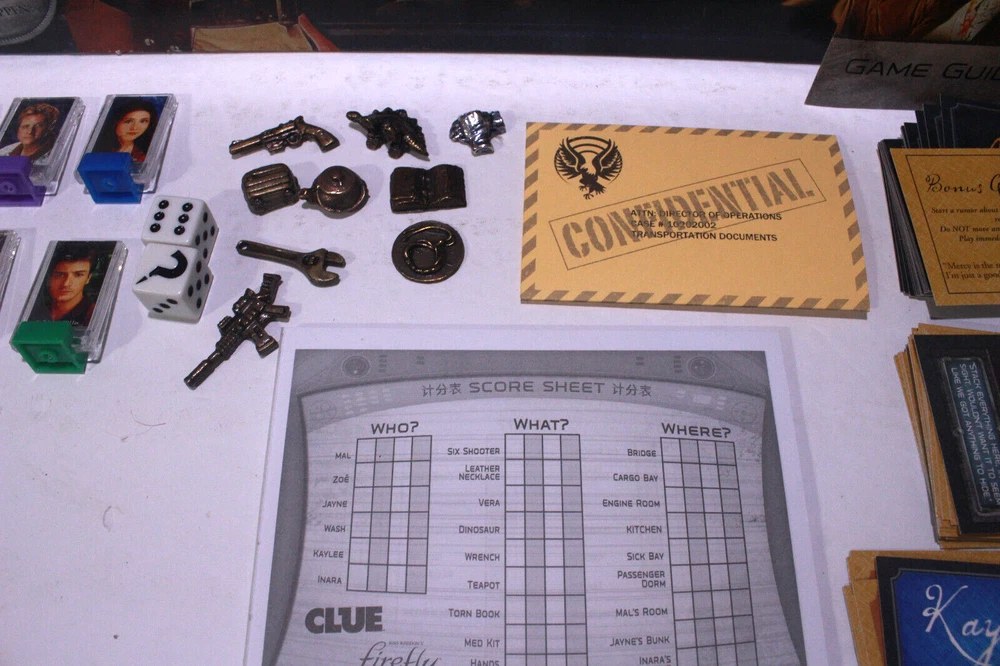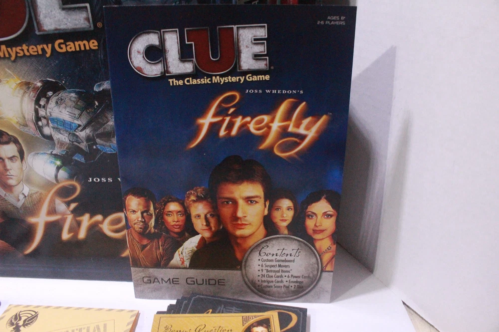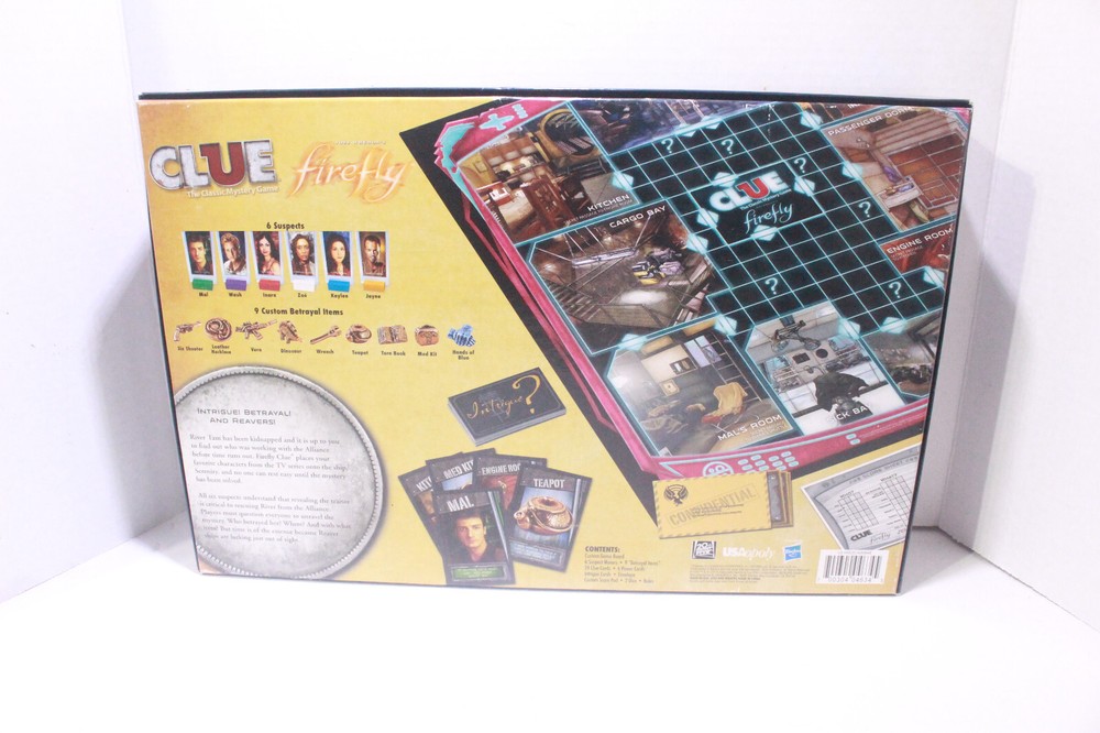 This Firefly Edition of Clue is a must-have for fans! The game blends classic mystery-solving with the beloved Firefly universe perfectly. Everything’s included—movers, cards, dice, and even a custom score pad. The betrayal items and intrigue cards add fresh twists, making each game exciting. Great condition, fast shipping—highly recommend for game nights!