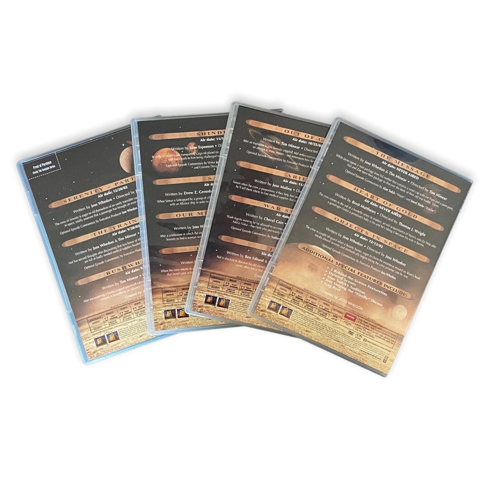 FIREFLY THE COMPLETE SERIES 4 DVD Set JOSS WHEDON. Box shows minor signs of use and shelf wear •All discs included •Proper Working Condition •Good Pre-Owned Condition