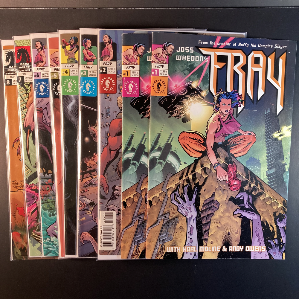 FRAY # 1(2), 2-8 Full Run + dollhouse #2 & dollhouse Epitaphs. 11 comics. Dark Horse Joss Whedon. The second #1 issue is from the second printing. It has different lettering. Bonus!! = This lot includes Joss Whedon's dollhouse #2 & dollhouse Epitaphs Condition: Comic books are in very good condition with minor handling dents. Please see photos and contact me if you have any questions. Shipping and Handling: Individually bagged and boarded. Comics are secured in a "Brick", closed in a plastic mailing bag and placed into a Gemini Mailer and then a Priority mail cardboard envelope. Combine orders to save on shipping. Look for my other listings and ad them to your cart. Look for the ?Request total from seller? button in your shopping cart. I will then be able to send you an invoice with the new combined shipping costs. If the shopping cart will not give you this option, please send me a message. I can refund you the shipping discount after your purchase is made. Please contact me with any questions. Thank you