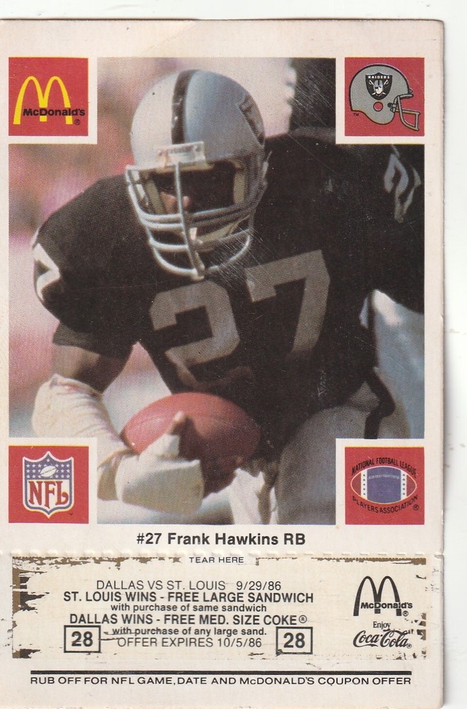 | Set | 1986 McDonald's Play & Win - Los Angeles Raiders - Orange Tab |