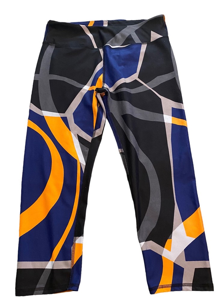 Fabletics Define PowerHold Mid-Rise Capri Retro Print - Orange, Blue & Black Size Medium 14” across the waistband 9.5” rise 20” inseam In good condition