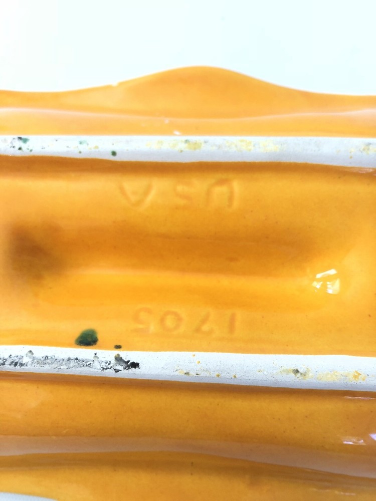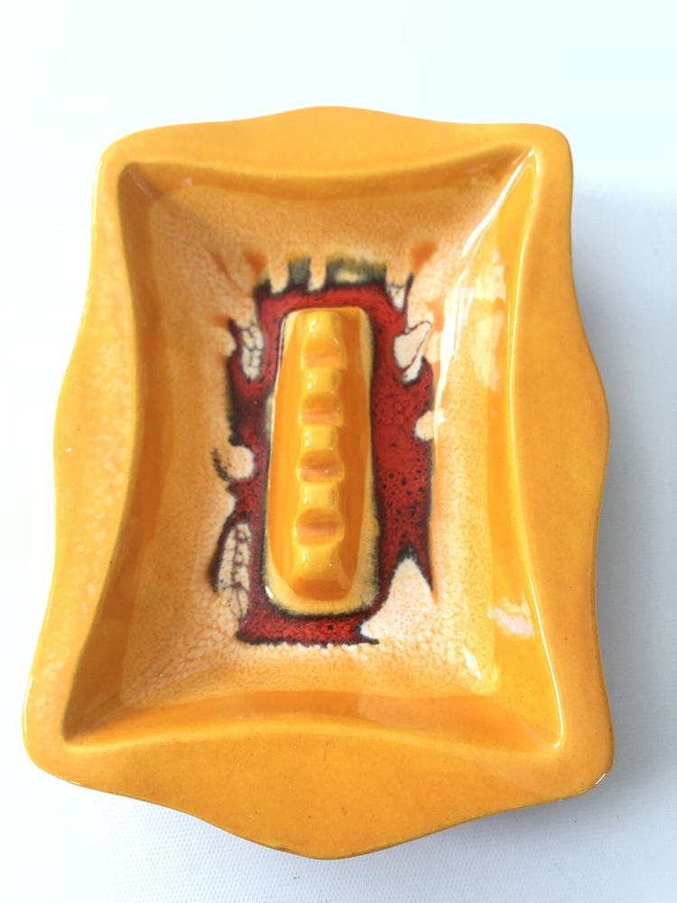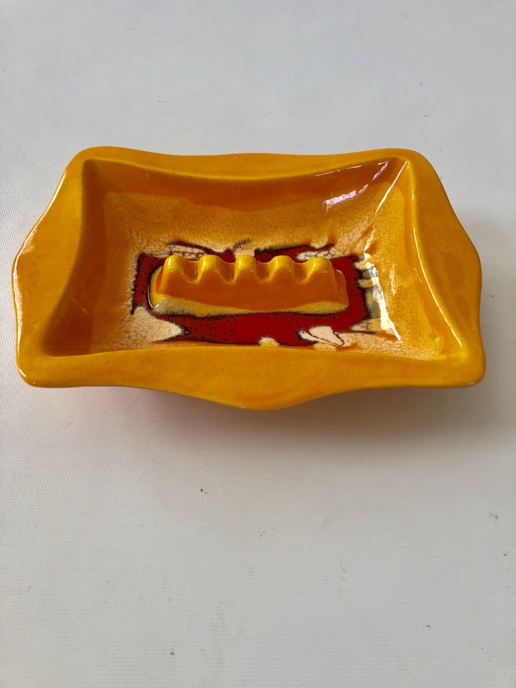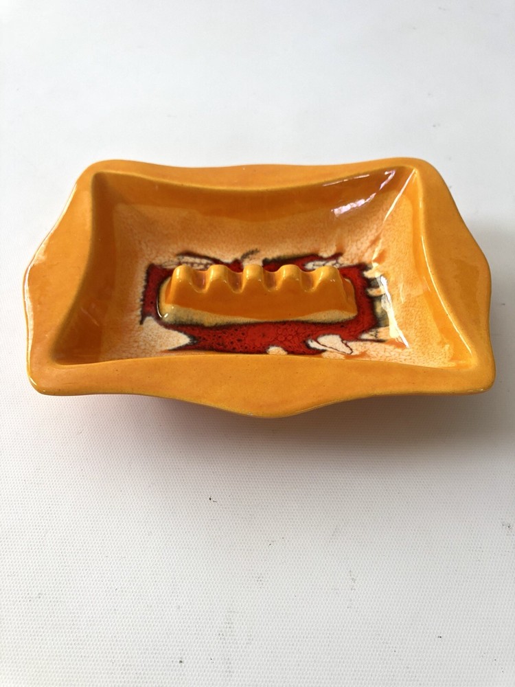 Fabulous Mid Century Mod Orange Drip Glaze Ashtray /Trinket Dish 9x6”. Condition is Used. Shipped with USPS Priority Mail. Tiny flea bite on glaze but still good condition sold as is...