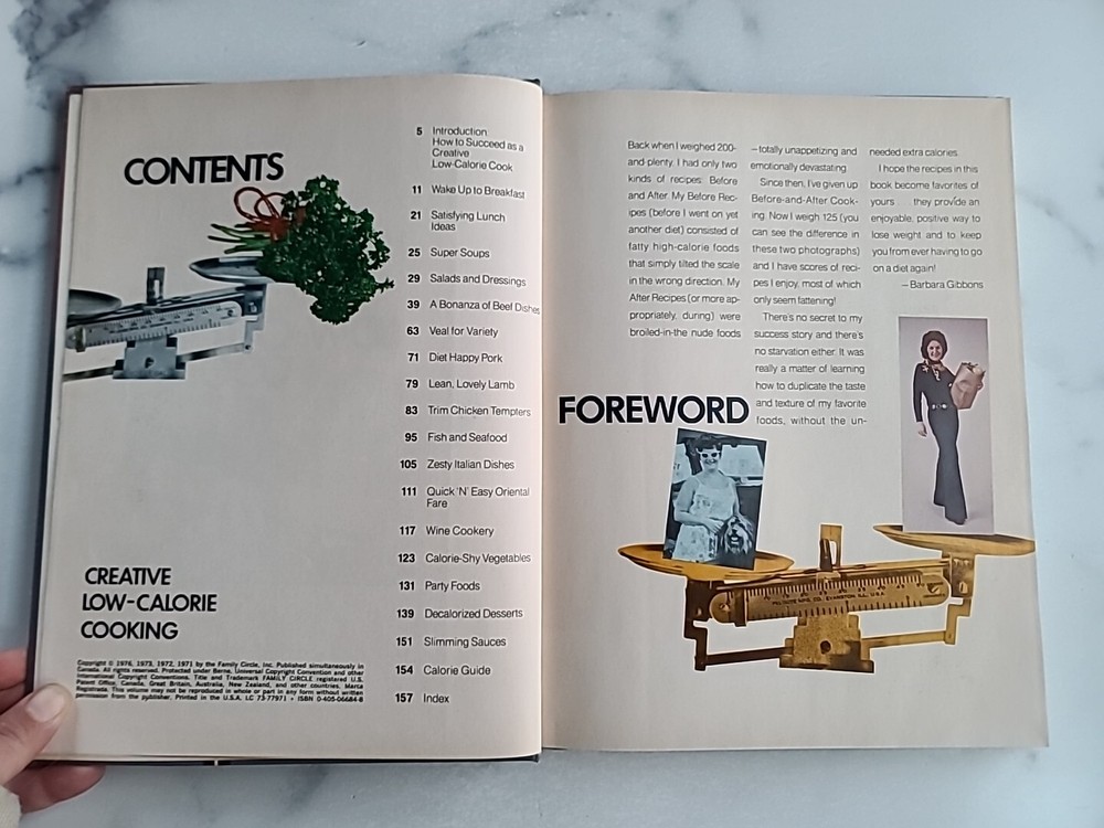 Family Circle Creative Low-Calorie Cooking Copyright 1977 Weighs 1 lb., 7.3 oz. Some yellowing around the edges of paper. Cover and binding show wear consistent with age. Some pages are dog eared. Some pencil on inside first page. No other writing found on inside of book. Please see photos. Sold as is. Priced accordingly. Does not include any props in photos. Please feel free to contact me with any questions you may have. Before you buy, please note that the items in my shop are pre-owned and may (or may not) have some signs of wear (scratches, scuffs, pulls, etc) due to their age. Any very noticeable defects or marks will be noted in the descriptions. Please read FAQs and store policies before buying. Thank you for shopping. LGB