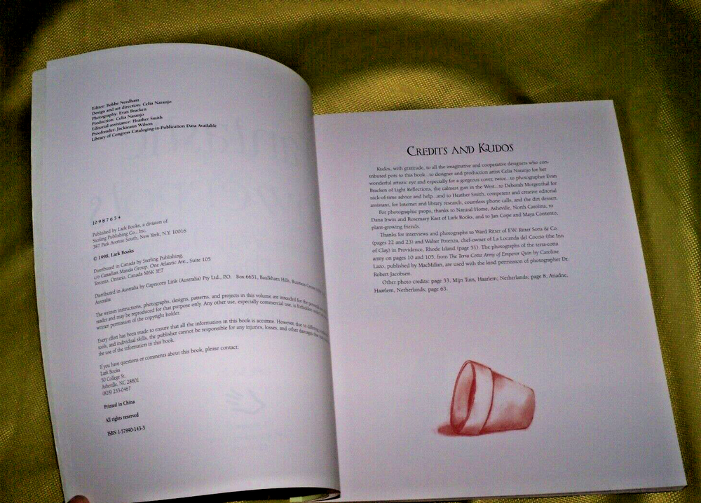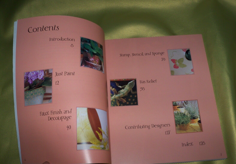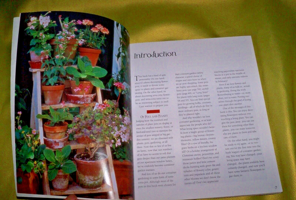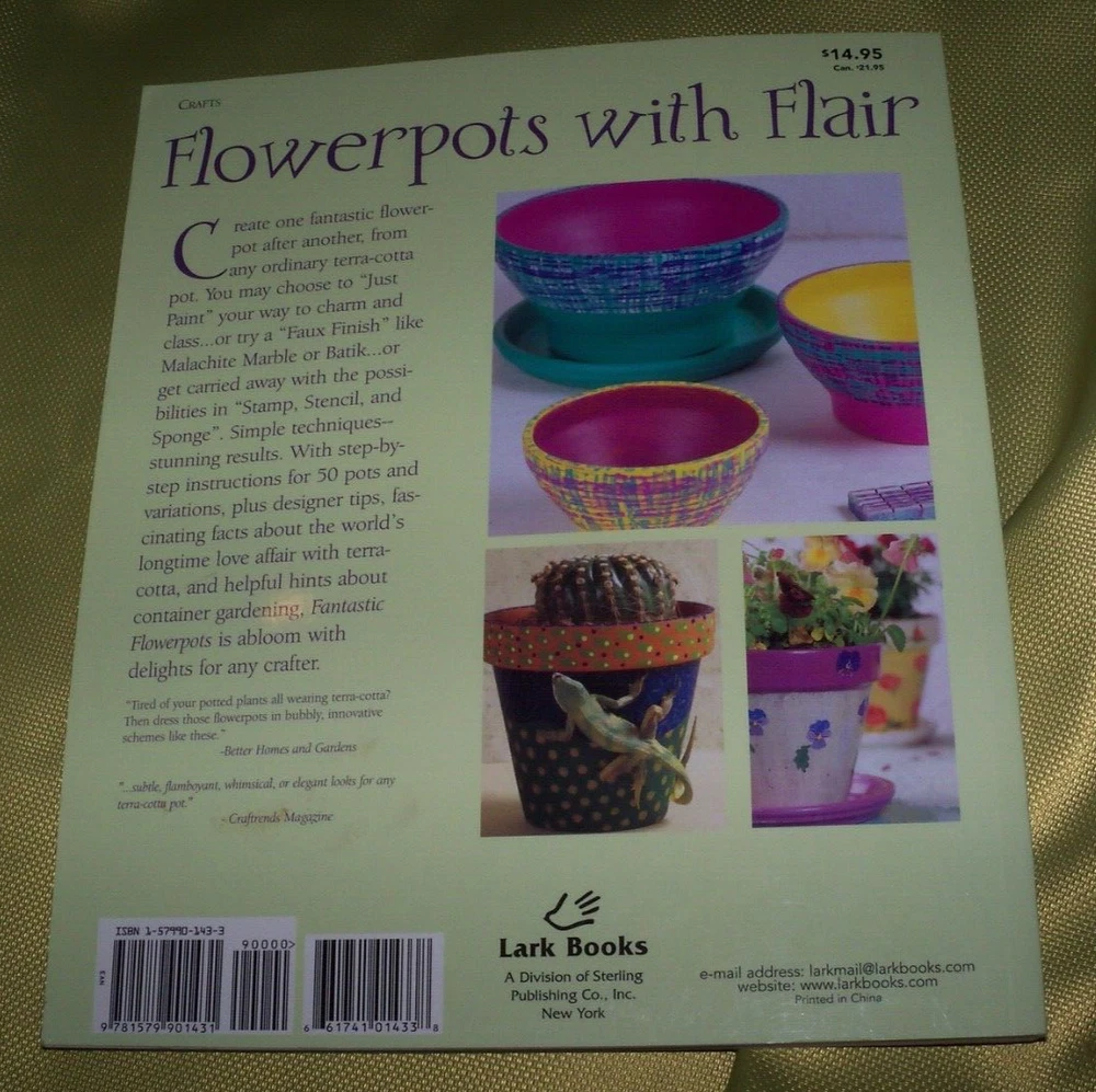 Fantastic Flowerpots: 50 Creative Ways to Decorate a Plain Pot , 1998 COPYRIGHT by Bobbe Needham (Author)- SOFTCOVER CONDITION VERY GOOD - BOOK SIZE 8 3/4 X 10 Publisher : Sterling Language : English Paperback : 128 pages . Transforming the garden-variety terra-cotta flowerpot into a work of art is the goal in this collection of fifty imaginative projects that employ stenciling, stamping, gilding, mosaics, and much more.