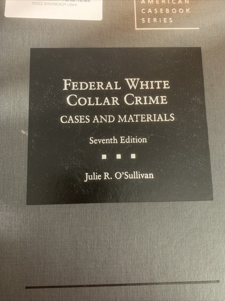 Federal White Collar Crime 7 Revised edition by O'sullivan, Julie R., ISBN 1642420980, ISBN-13 9781642420982, Used Good Condition, Free shipping in the US In a textbook on white collar crime at the federal level, O'Sullivan balances substantive and procedural criminal law in the study of US statutes under which white-collar defendants may be prosecuted. She covers mens rea: US sentencing guidelines; entity liability; perjury, false statements, and false claims; obstruction of justice; mail and wire fraud; public corruption; securities fraud; conspiracy; the Racketeer Influences and Corruption Organization Act (RICO); money laundering; grand jury; discover; Fifth Amendment: testimony and immunity, and documents and tangible objects; the attorney-client privilege and the work product doctrine for a corporate setting; representation issue; plea bargaining and cooperation agreements; parallel proceedings; and extra-territorial application of federal criminal law. Annotation ©2019 Ringgold, Inc., Portland, OR ()