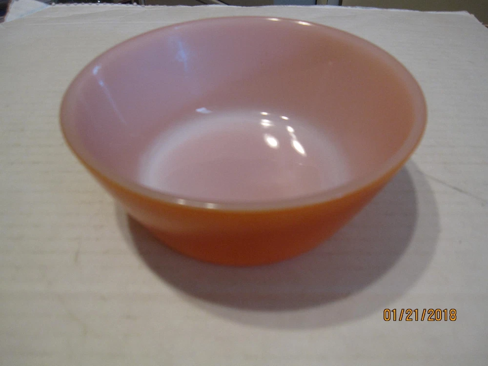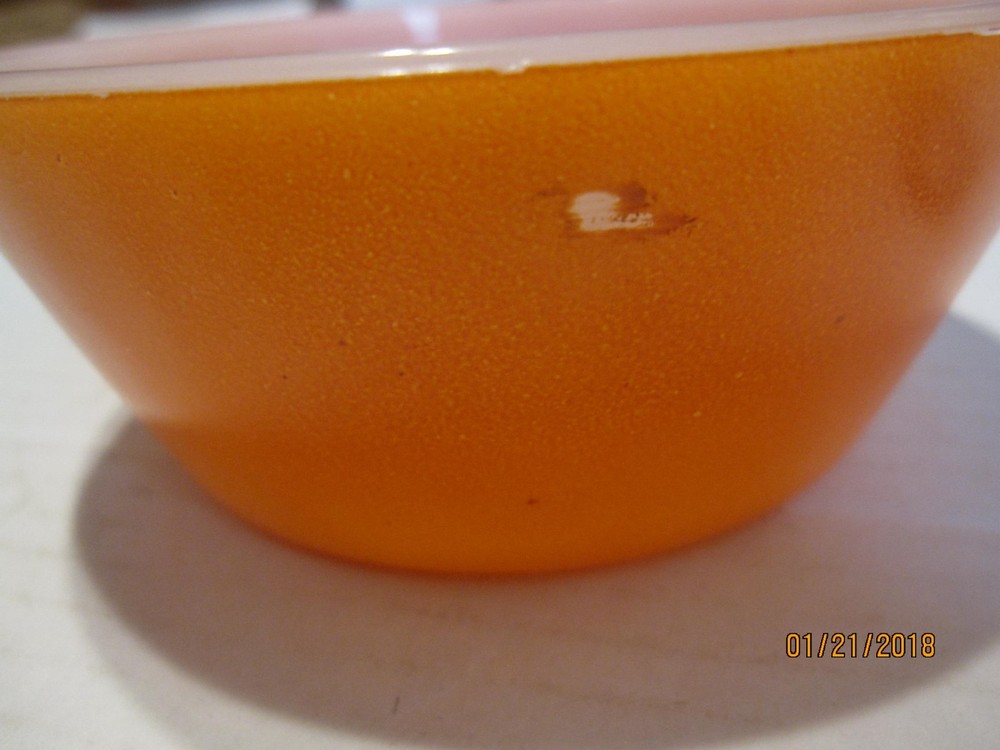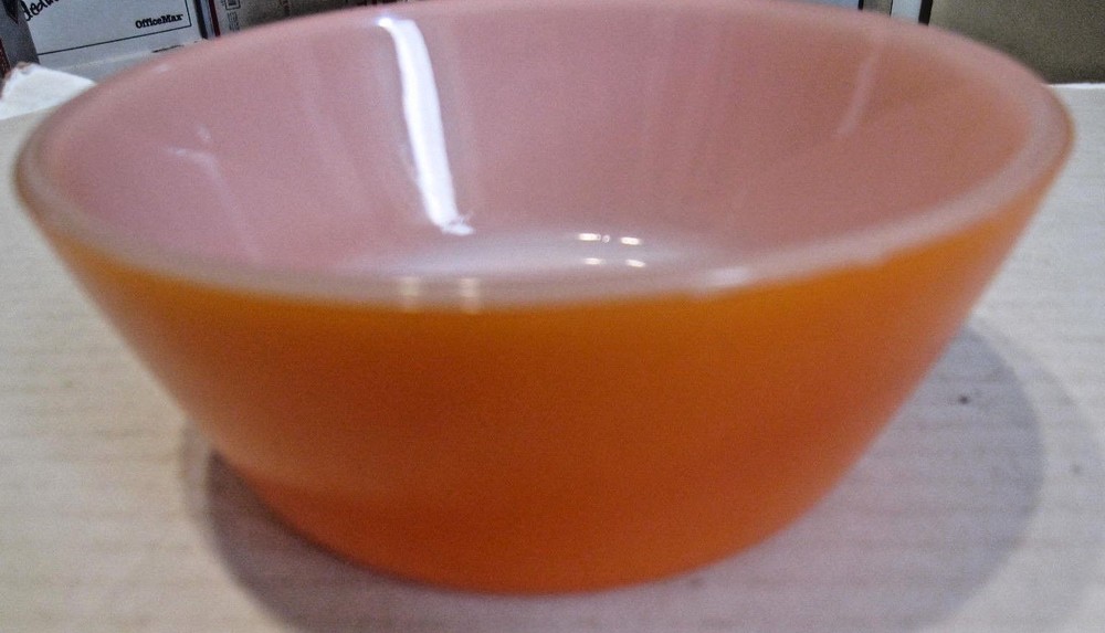 Federal glass orange 5" cereal chili bowl. One small scratch in the paint. See the pictures. Edge is a little rough..May be fleabites or may be finished rough.