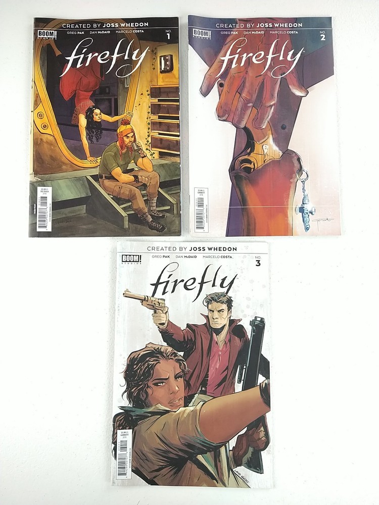 Firefly #1 (3rd Print) 2 3 Lot (2018 Boom Studios) NM Serenity Joss Whedon Published : 2018 Condition : Bagged and boarded, see pictures for details, thanks ----------------------------------------------------------------------------- I ship almost all items within 24 hours Combined shipping available, just add comics to the cart before purchasing! Comics are shipped in Gemini mailers for protection. Larger lots are shipped in cardboard boxes with some inner cushioning for protection. Message me if there's any problem with your order, thanks.