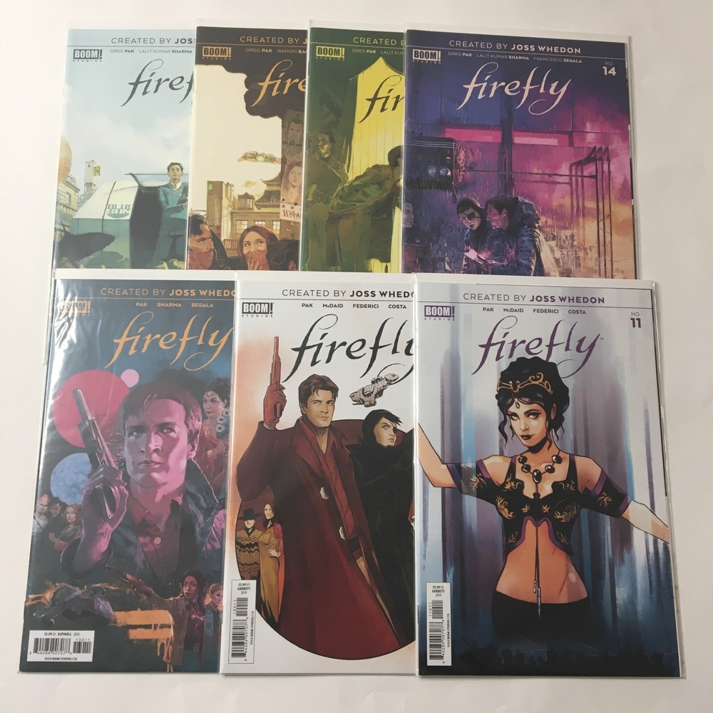 Dive into the captivating universe of Firefly with this comprehensive lot of issues, featuring the brilliant work of Joss Whedon, Greg Pak, and Dan McDaid, published by BOOM! Embark on a thrilling journey through the Modern Age of comics, enjoying the rich narratives and vibrant artwork that brings the tale of the Serenity crew to life. Each comic book in this lot is a first printing, boarded for added protection, and boasts a grade of 9.0 Very Fine/Near Mint, ensuring a high-quality reading experience. With the evocative Western and science fiction genre blend, colour style, and English language, these comics are perfect for a general audience eager to explore the exploits of this beloved universe. Many thanks for your interest in this item. Feel free to browse our shop for more similar products. If you have any queries please send us a message and we will get back to you as soon as we can. Payment within 48 hours please. If paid before 9am Mon-Fri dispatch will be same day, otherwise dispatch next business day.