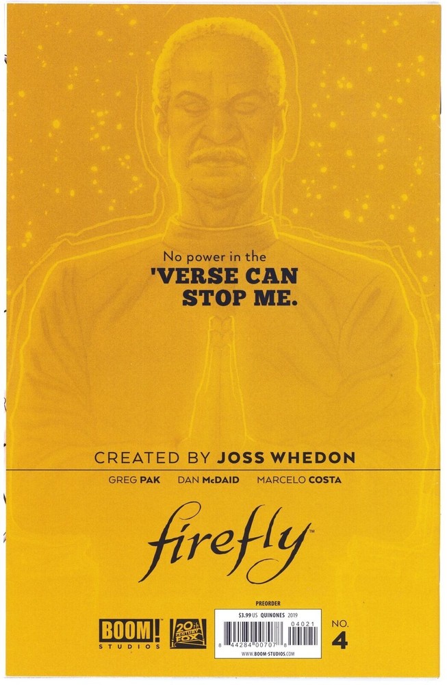 This listing is for Firefly (2018) #4. The book is in NM- 9.2 condition. The book pictured is what you receive. After payment is received, your order ships the next business day. All comics come bagged and boarded. All books come bagged. All orders are securely shipped, using bubble wrap, and placed between two pieces of 200-lb test cardboard, then enclosed within a 200-lb test cardboard mailing box. WE GLADLY COMBINE SHIPPING We offer your choice of USPS economy shipping or USPS Ground Advantage. And we offer combined shipping- Only $.49 for each additional item! All shipping labels are printed through Ebay and include free USPS tracking.