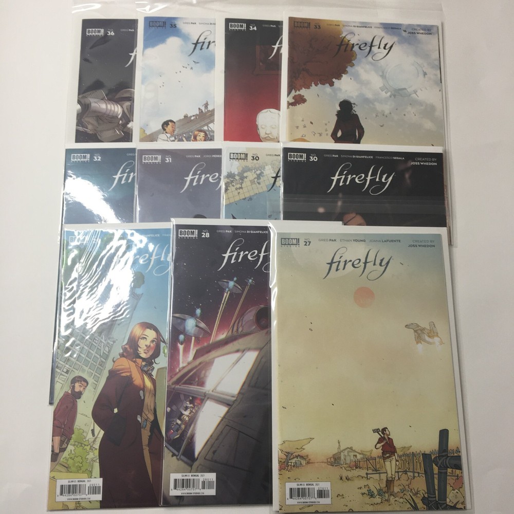 Dive into the captivating universe of Firefly with this comprehensive lot of issues, featuring the brilliant work of Joss Whedon, Greg Pak, and Dan McDaid, published by BOOM! Embark on a thrilling journey through the Modern Age of comics, enjoying the rich narratives and vibrant artwork that brings the tale of the Serenity crew to life. Each comic book in this lot is a first printing, boarded for added protection, and boasts a grade of 9.0 Very Fine/Near Mint, ensuring a high-quality reading experience. With the evocative Western and science fiction genre blend, colour style, and English language, these comics are perfect for a general audience eager to explore the exploits of this beloved universe. Many thanks for your interest in this item. Feel free to browse our shop for more similar products. If you have any queries please send us a message and we will get back to you as soon as we can. Payment within 48 hours please. If paid before 9am Mon-Fri dispatch will be same day, otherwise dispatch next business day.
