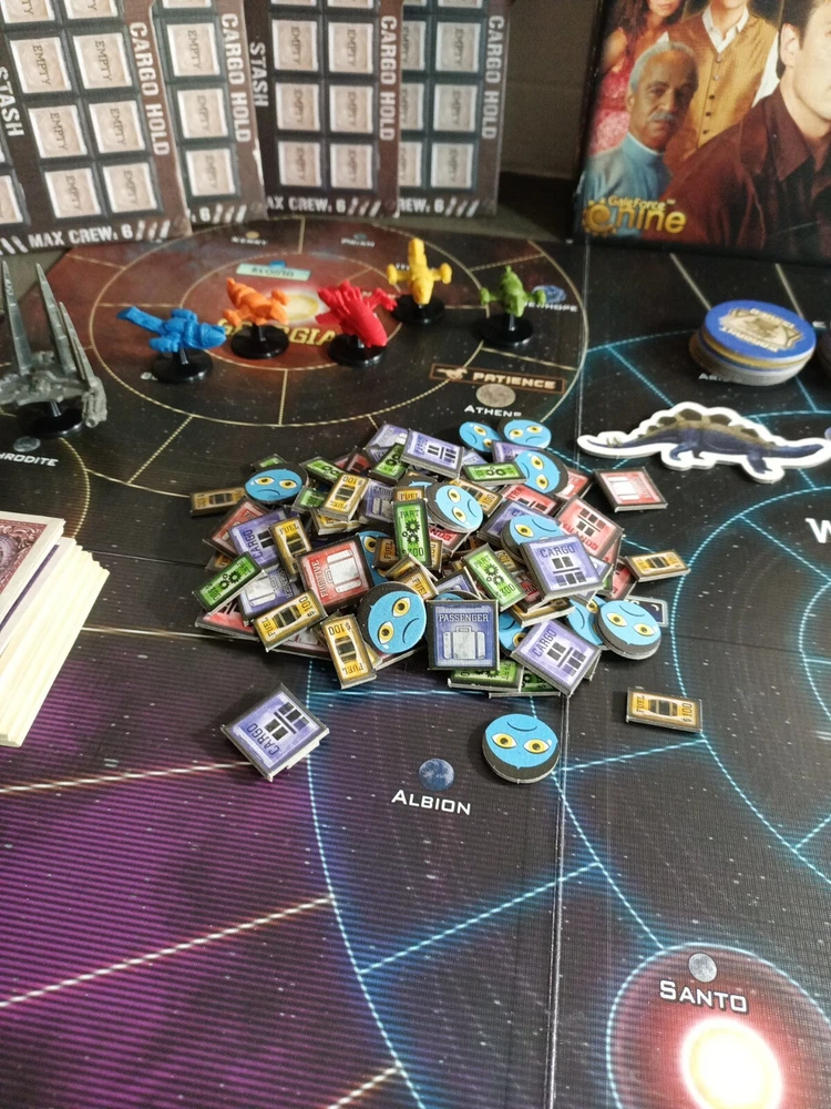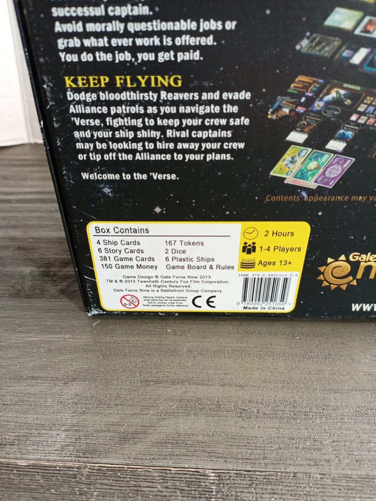 This game is a must-have for Firefly fans! The theme is spot-on, and the gameplay captures the thrill of being a spacefaring smuggler. Components are high quality, and even with light wear, everything works perfectly. So much fun with friends!