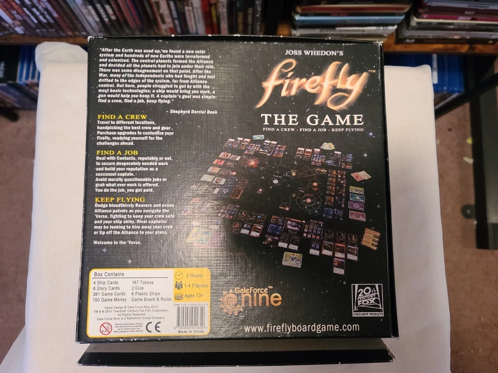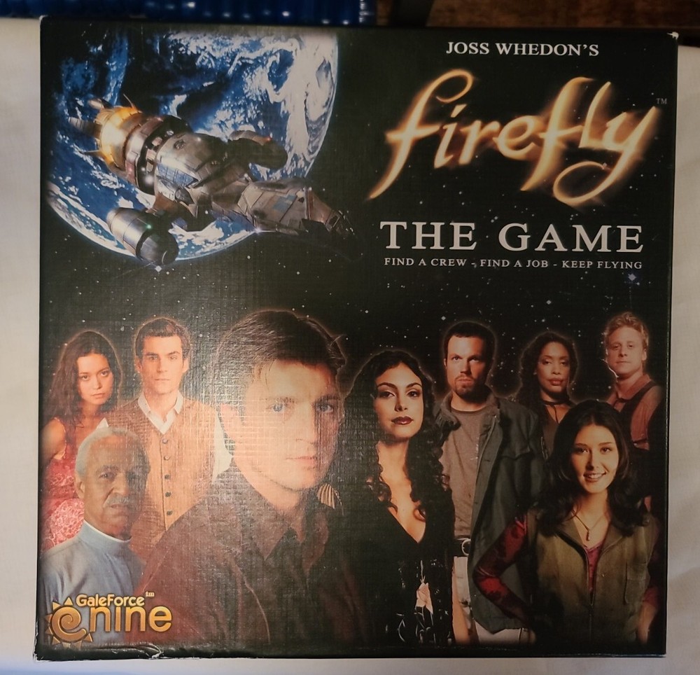 Firefly The Game Fantasy Board Game Joss Whedon 2013 Gale Force Nine COMPLETE. Please look at pictures for condition. Bottom of top cover of box is opened at both sides and has some marks on box Please look at pictures. Feel free to ask questions or for more pictures.