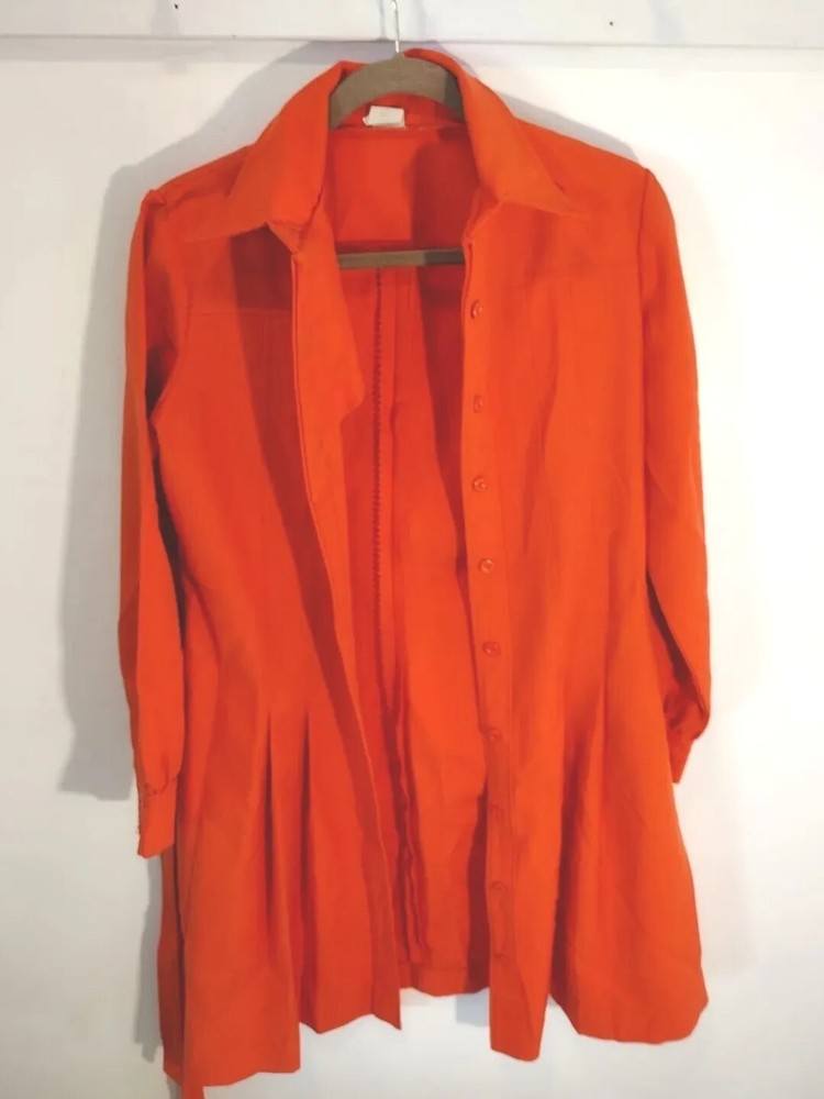 A vintage super cool and retro ladies spring or fall belted jacket. This groovy gem is perfect for the Fall and Halloween season. It's fitted style will surely be flattering as well as a functional. The pictures really don't do it justice. Good condition with minimal wear.
