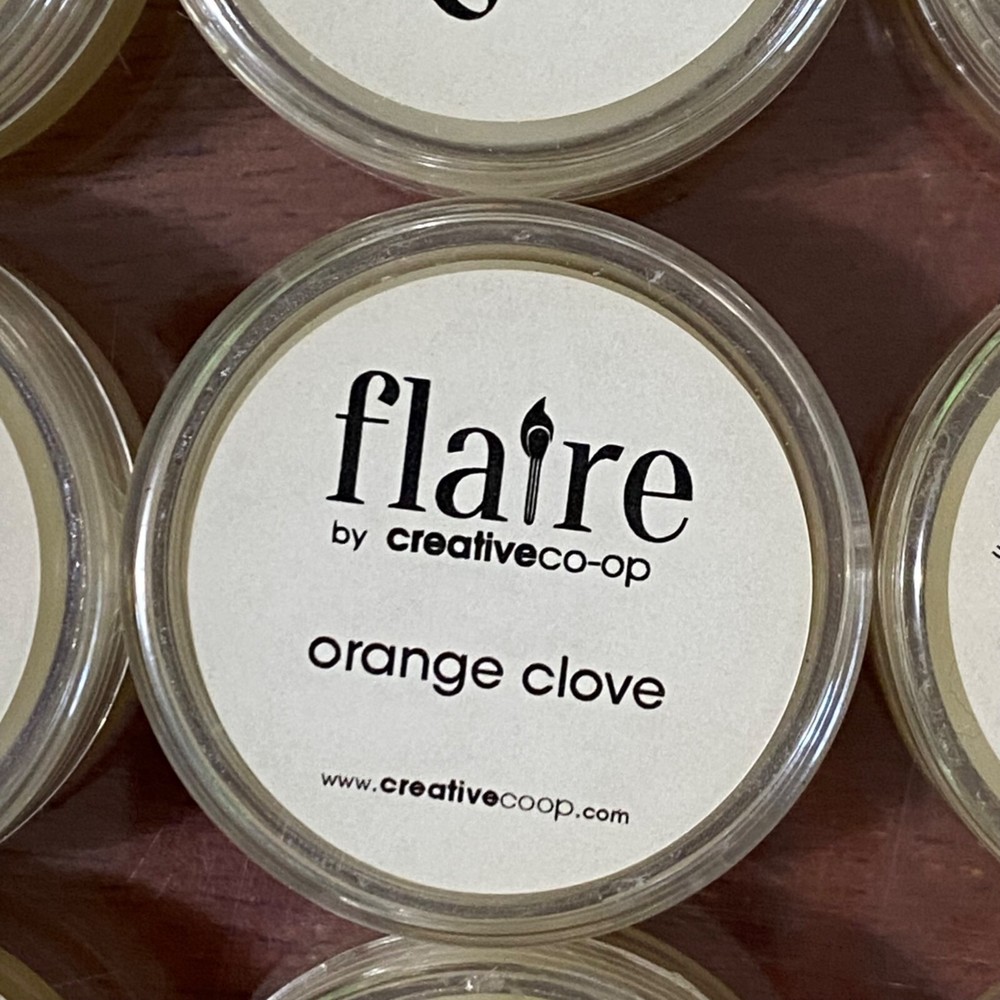 Creative Co-Op Flaire Scent Sample Wickless Candle Lot of 24 Orange Clove scent 1.25 inch diameter .75 inch height Remove the lid and place anywhere you would put a candle Can be used in a warmer Unus...