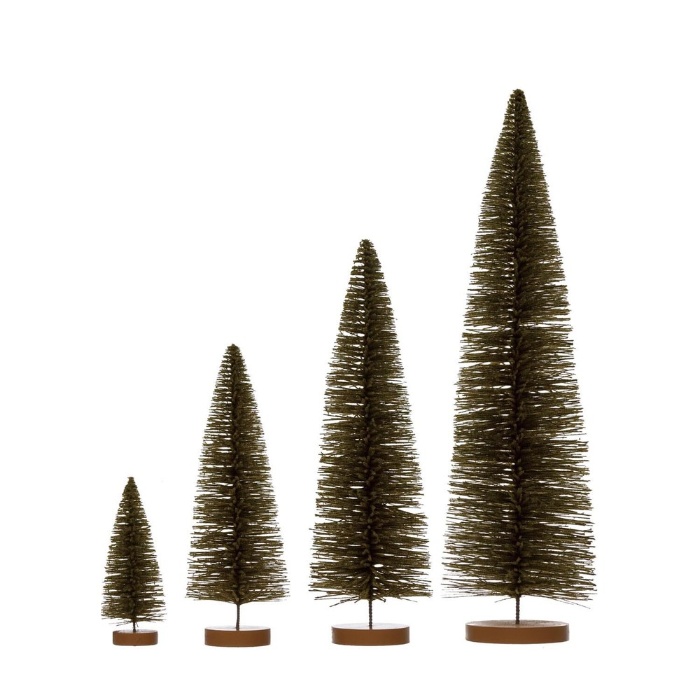 Our "Foraged Holiday" collection will transform your home into an enchanting holiday cottage; Curate a seasonal display that showcases whimsical images and found silhouettes. Add a touch of whimsical holiday cheer to any seasonal display with our masterfully crafted figurines featuring a wide array of beloved silhouettes. Flocked Plastic Bottle Brush Tree Green Color; Wood Base 80% Plastic, 20% MDF This Holiday Piece Shines In Eclectic, Boho, And Vintage Décor Styles 4 in L x 4 in W x 11.75 in H
