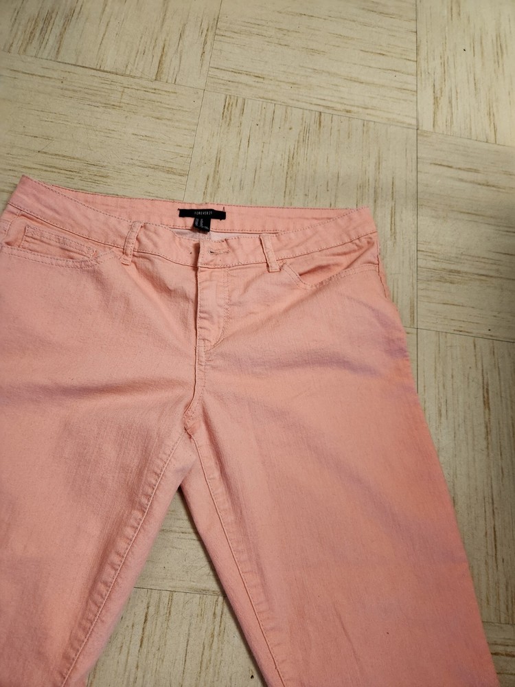 These Forever 21 ladies pants are perfect for those who love to travel in comfort and style. They feature a mid-rise waistline with a flat front, straight leg style, and a zip and button closure. The pants are made of lightweight and easy-care polyester and cotton blend fabric that dries quickly, making them perfect for summer, fall, and spring seasons. They come in a beautiful shade of orange, which adds a pop of color to your outfit. The pants have pockets for added convenience, and their solid pattern and classic style make them suitable for workwear and casual occasions. These pants are a size 31 with a waist size of 36 inches and an inseam of 28 inches.
