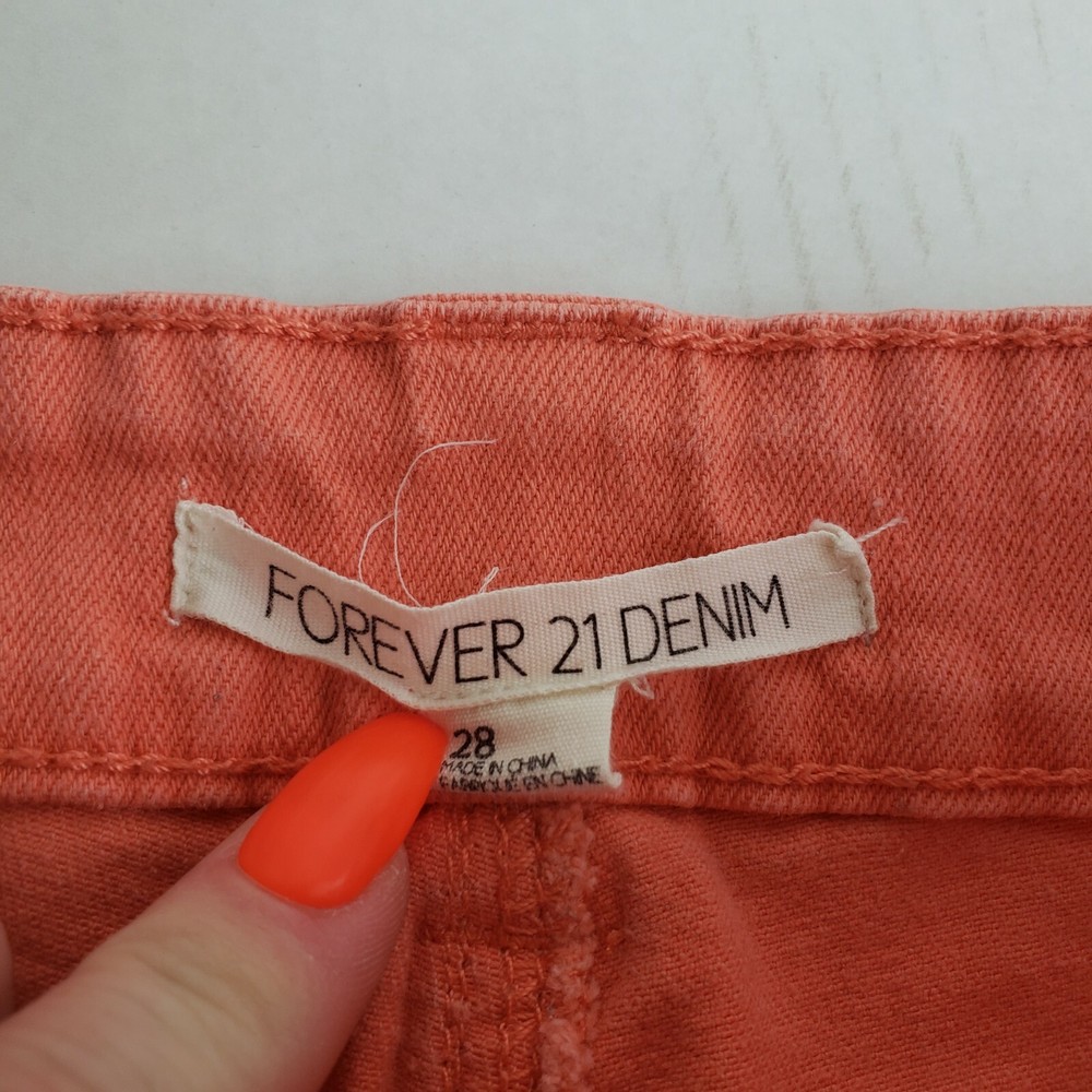 Forever 21 Womens Denim Peach Orange Shorts Size 28 pockets Cutoff fray . Condition is Pre-owned. Shipped with USPS First Class Package. Waist across 15 inches Rise 8 inches Inseam 2 inches P10...