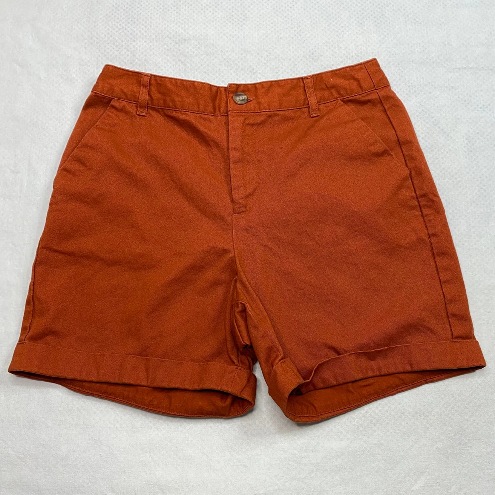 Forever 21 Womens Shorts sz S Orange Mid Rise Flat Front Stretch Cuffed Chino Measurements (inches) Waist: 14 Inseam: 4.5 Length: 14.5 Rise: 10 (All measurements taken while laying flat) 100% cotton Feel free to ask any questions. Item comes from a smoke free and pet free environment. Please check out our selection of children's, men's and women's items in our eBay store! Thanks for looking and Happy eBaying!