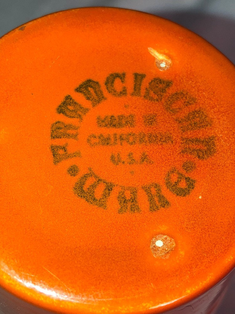 Franciscan Orange Tumbler This glass is in mint condition. Come see More Pottery & Porcelain for sale in our eBay store, so please bid here and then browse thru and find more selections and save on combined shipping. Welcome to Depression Glass Warehouse !! We're glad you stopped by! Shopping with us, you can expect premium customer service and wonderful products. Please Sign up for our Store Newsletter AUCTION/SALE TERMS: 1. Payment within 2 days of the end of the item listing, in USD. 2. If you have questions about an item? ASK ME FIRST! Use this link ASK SELLER A QUESTION ; 2. ALL Items are insured by me prior to shipping so if it arrives damaged, please contact me before contacting eBay or Paypal. I provide full refunds upon receipt of photographs/jpgs of damage (I need those for insurance claims). 3. If you prefer a particular class of postage, SELECT that on the invoice before paying and contact me if necessary for a revised invoice. If you want your items more quickly, then select Priority Mail or Priority Mail International. If cost is a consideration, then, please realize YOU selected the lower cost and don't ding my stars cause it takes forever to arrive. 4. Anything that is slow to arrive, contact me first. Trust me, I hate losing things in the mail as much or more than you do and will hunt them down if at all possible. 5. HASSLE FREE RETURNS!! Just send it back. A heads up email saying it's coming back is appreciated. Refunds are by the same method as the original payment upon my receipt of the returned item in as shipped condition, which means with all tags, labels and packaging intact and undamaged. Do not wear it or wash it or play with it or serve dinner on it and then decide tor return it. That is not acceptable and I will not refund under those circumstances. . 6. International Customers - we do not prepay the VAT or the Customs Duty, that is your responsiblity upon receipt. Our Post Office knows we sell on ebay and they wouldn't accept a customs form that said "gift". Besides it is illegal and a violation of e Bay TOS so we don't do it. Once you've bid here, please come see what else we have at Depression Glass Warehouse