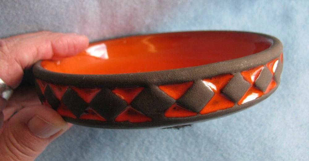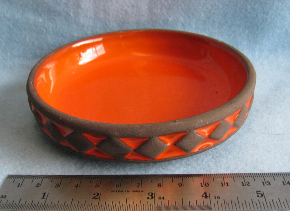 Frank Keramik of Denmark orange and black mid century modern 5 1/2 inch bowl. About 1 ⅛ of an inch in height. Condition is perfect. Please email any questions.