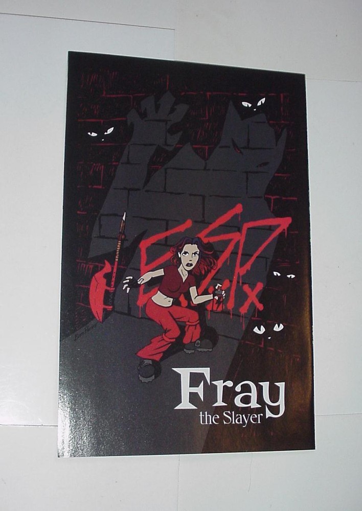 Fray is a futuristic spin-off of the television series Buffy the Vampire Slayer. Written by Buffy creator Joss Whedon, the series follows a Slayer named Melaka Fray, a chosen one in a time where vampires (called "lurks") are returning to the slums of New York City, and the rich-poor divide is even greater. In a short video promoting the charity Equality Now Joss Whedon confirmed that "Fray is not done, Fray is coming back. More than that, I will not say." This was reiterated in 2007's Comic Con where Joss stated that he "absolutely would be returning to that world." The series was closely linked to the concurrently airing seventh season of Buffy, with coinciding depictions of the Slayer's mystical scythe and her origins, a major contributor to the expansion of the canonical "Buffyverse" in which Buffy the Vampire Slayer and other related stories are set. Melaka Fray also appears in the story "Tales", by the same creative team as the series, in the anthology comic book Tales of the Slayers. Melaka "Mel" Fray � A 19-year-old thief and Vampire Slayer. Unlike other Slayers, she has had no prophetic dreams of her destiny or of the Slayers before her, and is now trying to figure out what her destiny as the Slayer entails. Buzz Parker�s aesthetic and imagination is colored by his interest in pop surrealism, tree houses, illustrated gardening and comic books. He graduated from Humboldt State University in 1996 with a degree in Graphic Design and Printmaking. In 1998, Buzz partnered with Rob Reger's Emily The Strange. Buzz is continually expanding Emily's Secret Garden series with inspiration from his own backyard garden. His introspective Emily drawings and paintings have been shown throughout California, Berlin, Tokyo and Hong Kong. Near mint condition. If you have any questions please be sure to ask BEFORE purchasing! Can't find what you're looking for? Search my titles AND description by clicking here ! You'll notice your search bar now says "Search only this store"...quite a powerful tool! Please check my other listings HERE before checking out...combine your order and save on shipping! Please add me to your favorite sellers list as I have new listings on the way! Thanks for viewing! Please note shipping is full price plus $2 for each additional item. PLEASE TAKE A MOMENT AND CHECK MY OTHER LISTINGS! If you don't see it- ask! It MAY be in stock! We'll be glad to put a listing up for you! Respond to messages in 24 hours or less! To see more PIN-UPS ---> CLICK HERE!!!