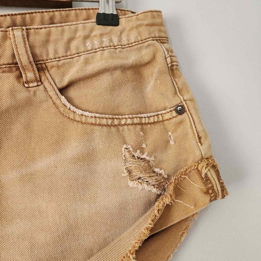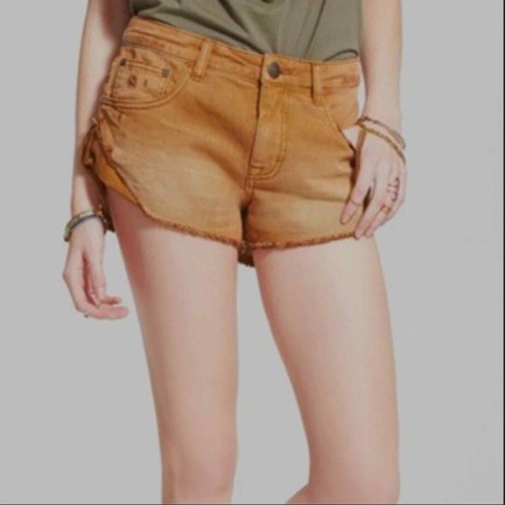 <![CDATA[<div>Great Condition. Burnt Orange Irreplaceable Cutoff Shorts by Free People from their festival collection. Features frayed upturned hems, fading, distressed, whiskering, five pocket styling, button and zip fly closure, raw hem, mid rise jean shorts. Color is burnt orange / brown. Size: 28. Please check photos for details and measurements. tags: festival, summer, beach, streetwear, punk, Smoke & pet free home BUNDLE & SAVE MORE