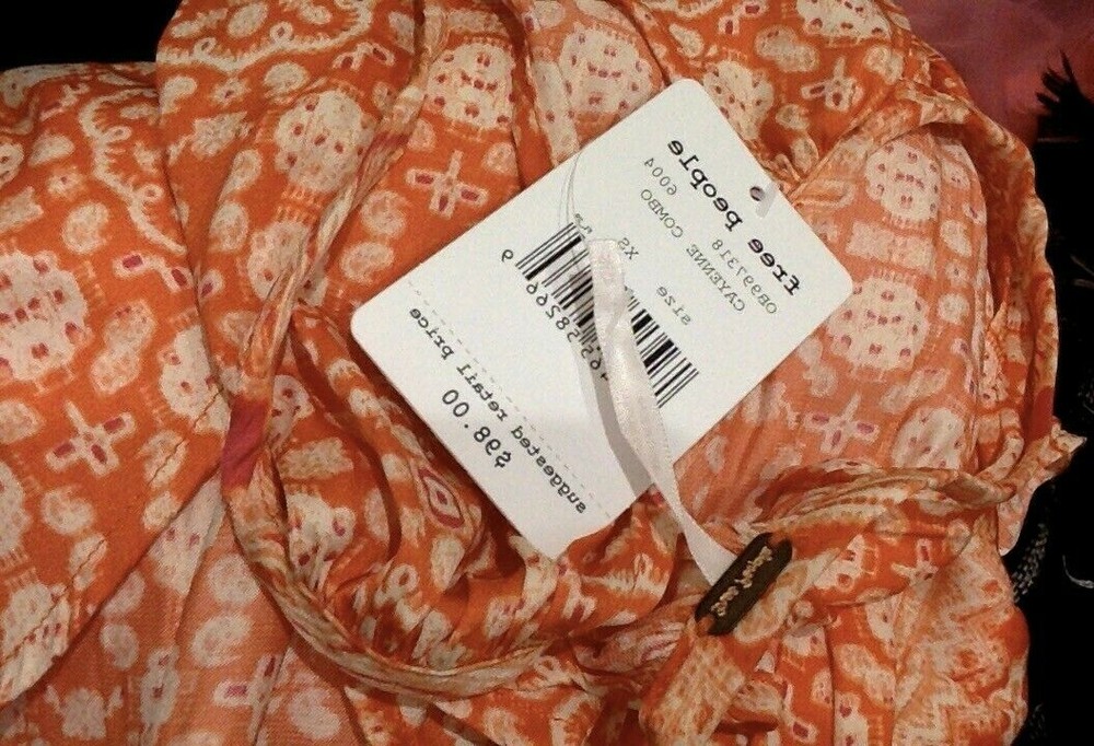 Free People Mid Summer Day Orange Tunic Top, NEW with tags! XS High collar, interesting pattern and cuts. It doesn't fit me, normally priced at $98. You won't find such a condition at such a steal of ...