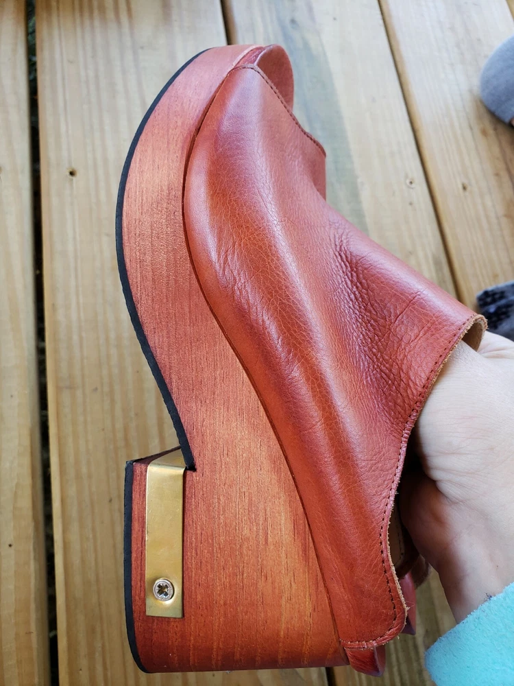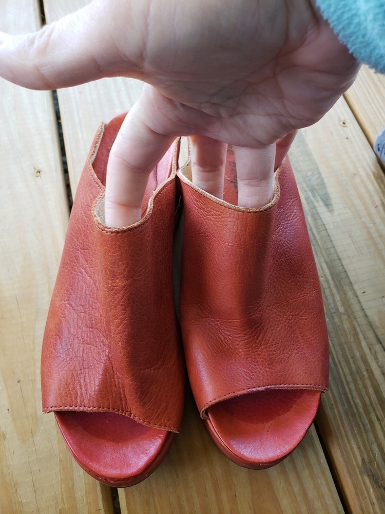 Love these clogs! Super comfy and stylish—perfect for casual outings. The orange color is vibrant, and they fit true to size. Lightweight and easy to slip on, great for everyday wear. Pre-owned condition was better than expected, no major flaws. Shipping was smooth too. Definitely recommend!