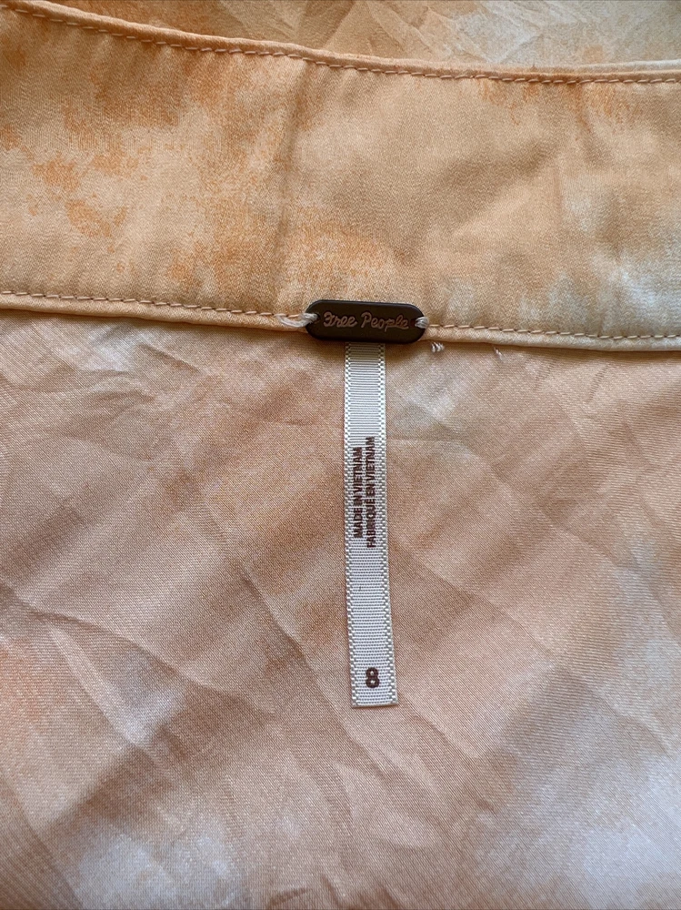 Free People Women Orange Peach Tie-Dye Martine Flirt Mini Skirt Size 8 US Approximated measurements: Waist: 15” Hips: 20” Length: 20” *Measurements are in inches taken with garment lying flat on outside of garment. Hips are measured across the widest part of the hip area. Waist is measured flat bell. ( Multiply by 2, -1” to calculate your waist). Length is measured from the center of back to bottom hem. We will not take returns base on measurements. Buyers should previously know their size.Measurements are approximations provided just as an extra to assure proper fit. Please Remember all Clothing Items may fit differently depending on Brand, Fit, Use or Prior customization. All Returns are accepted if item is in same condition as when shipped to Buyer. Buyer pays all shipping charges. All returns will require return picture of the stain, rip or tear to be compared with listing photo. Please contact us with any questions or concerns about your purchase before leaving negative or neutral feedback. Please give us the opportunity to assist you. As our feedback shows, we do our best to take excellent care of our customers. Shipped with USPS First Class Package/ Priority Mail. Don’t forget to check our store & get discount if buying more than one item!!! Thank you!