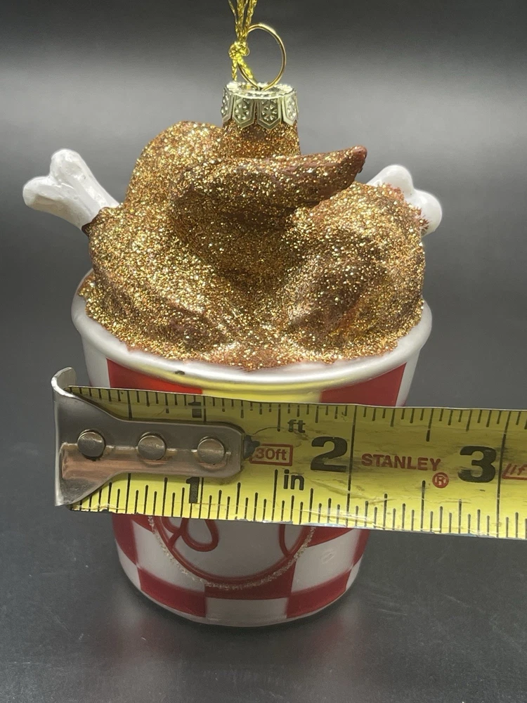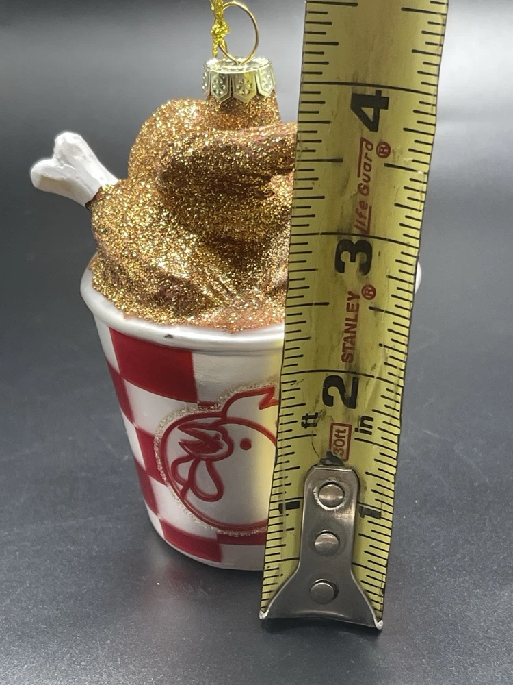 The Fried Chicken Bucket Glass Christmas Ornament by Creative Co-Op is a whimsical and glittery decoration perfect for any Christmas tree. Made of hand-blown glass, the ornament features a unique chicken shape that will surely stand out in your holiday decor. With a theme of food and drink, this 2024 collectible will be a fun addition to your ornament collection, representing the delicious tradition of fried chicken during the holidays. Zoom in on pictures for details and measurements. Check out my other items and read my buyer feedback for insights into my reputation. Consider following my store for updates on new listings and discounts! About Me: I love finding unique, collectible treasures and believe one person’s “trash” is another’s treasure. My goal is to give rare items a new home instead of ending up in a landfill. Your support means a lot to me—feel free to leave feedback, follow my store, and share with friends! Member since: Feb 21, 2021 Thank you for considering our second-hand treasures! By buying second-hand, you’re supporting a sustainable lifestyle. Feel free to reach out with any questions. We look forward to serving you!