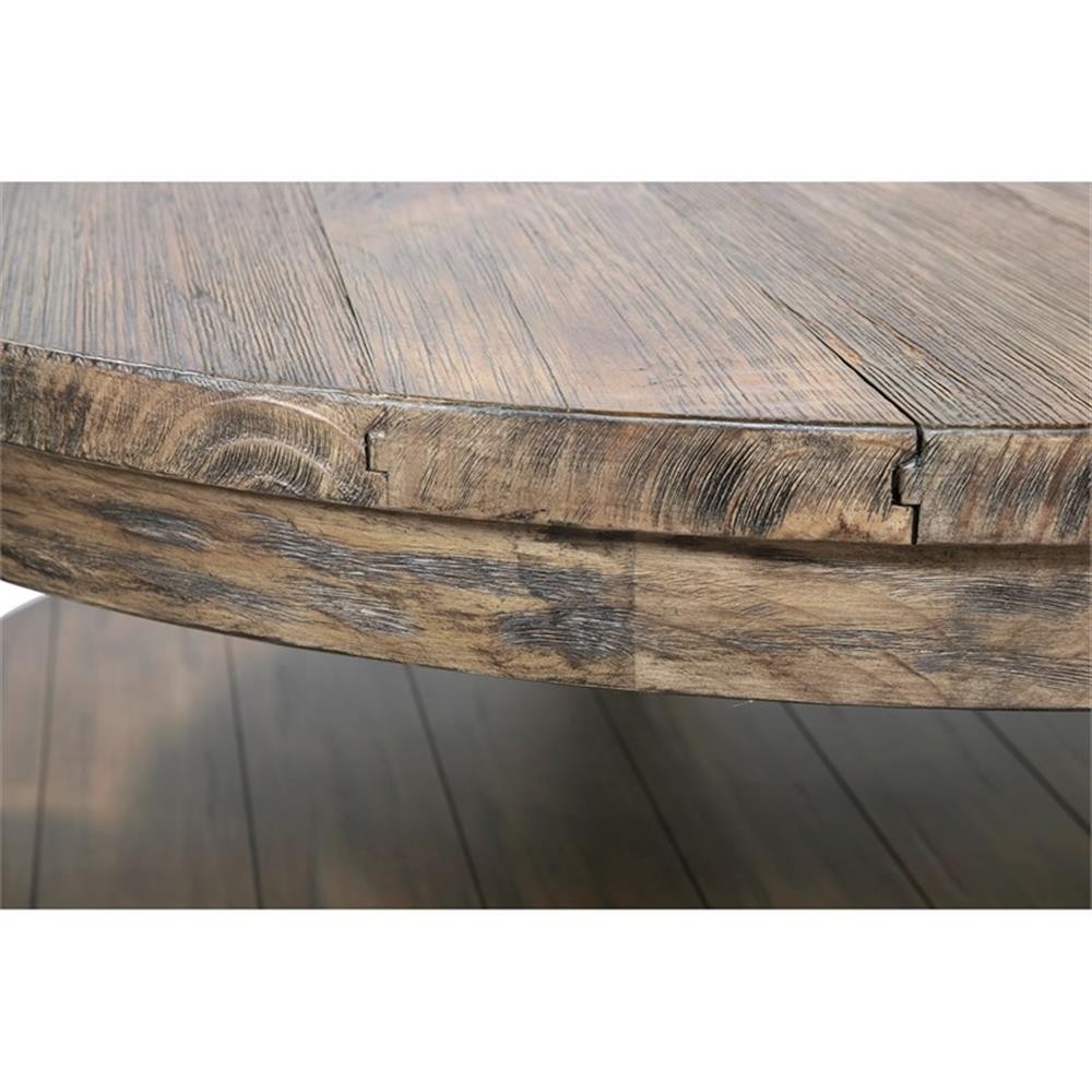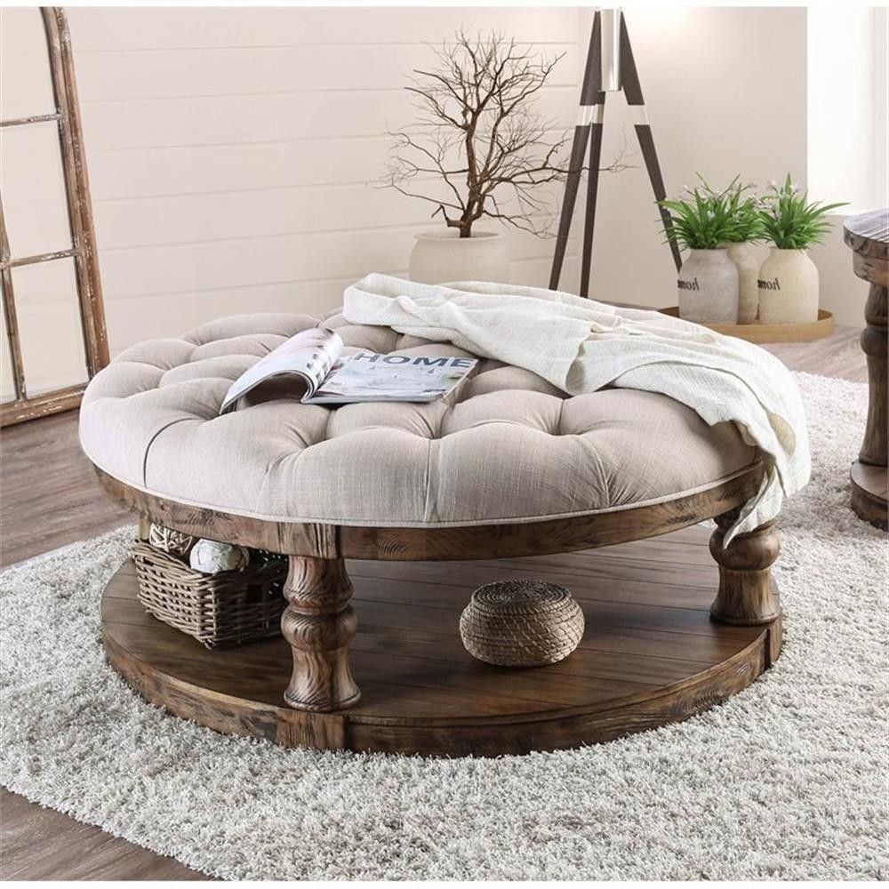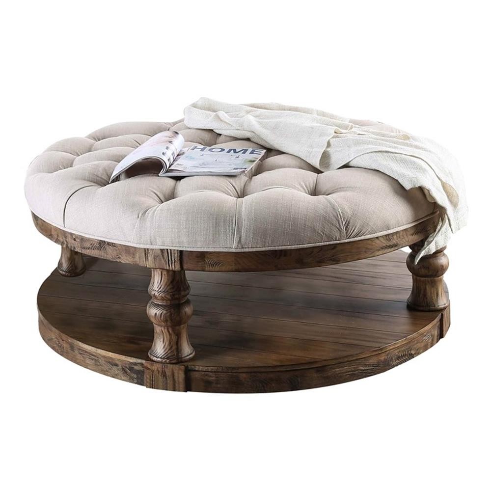 This antique oak wood coffee table from Joss collection by Furniture of America features a stunning weathered finish with sophisticated turned supports and charming tufted fabric tabletop. Distinguished by its massive size, the spacious round coffee table provides all the room you need for storage and decor. Easily match this piece with Rustic or Farmhouse style for an elevated look. Features: Includes: One (1) Coffee Table Style: Rustic Finish: Antique Oak Materials: Solid Wood, Wood Veneer, MDF Soft tufted fabric tabletop with welt trim Elegant turned supports Stable and sturdy flat rested base Easy to follow step by step assembly guide included Specifications: Product Dimensions: 48"W x 48"D x 20"H Weight Capacity: 75 lbs. Product Weight: 93 lbs. Assembly Required: Yes Warranty Description: 1-Year Manufacture Limited Replacement Parts Warranty
