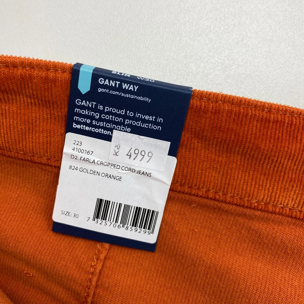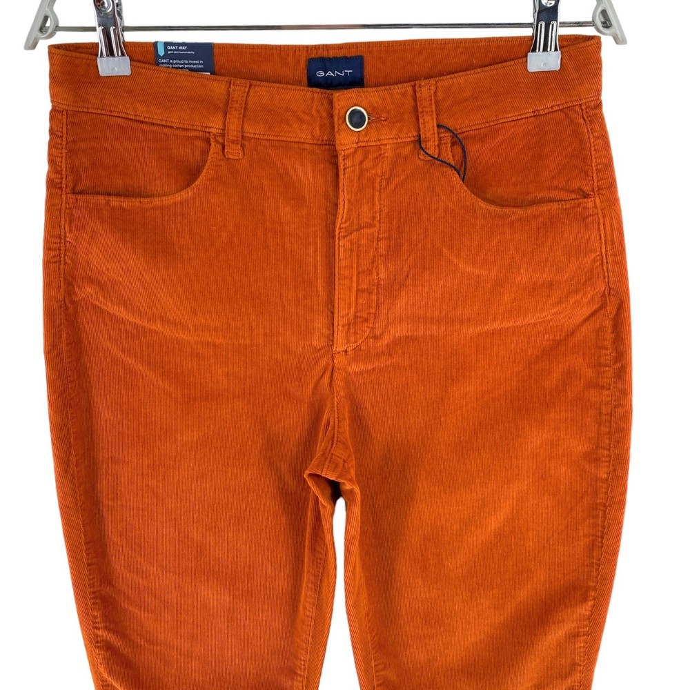 GANT Women Dark Orange FARLA Corduroy Slim Fit Cropped Jeans Size W30 This product data sheet is originally written in English. KAMPE RA37 KAMPE RA37 Closure Zip Size 30 Waist Size 30 in Material Cotton Material Elastane Material Lyocell Fabric Type Corduroy Accents Button Accents Logo Accents Zip Colour Orange Vintage No Rise Mid (8.5-10.5 in) Brand GANT Fit Slim Size Type Regular Type Jeans Department Women Style Cropped Features Pockets EAN Does not apply